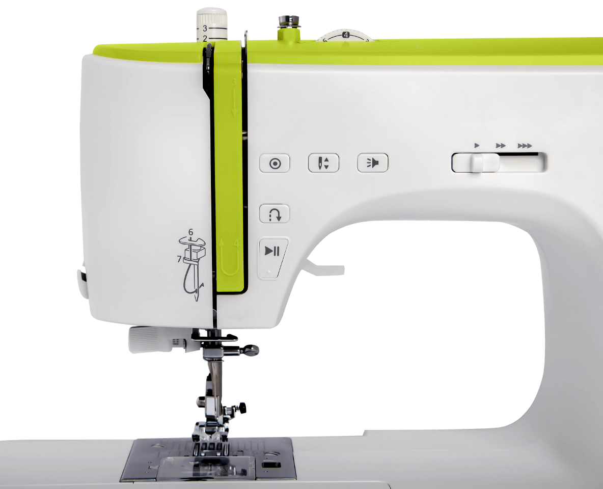 На дисплее управления отображаются все режимы работы машины: тип строчки, ширина и длина стежка, тип используемой лапки, положение иглы и реверс.