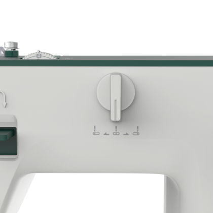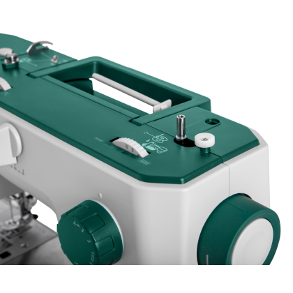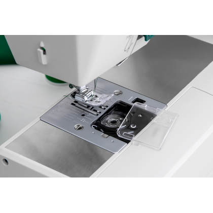 Двадцать четыре варианта строчки (зигзаг до 6 мм) включают полуавтоматическую прорезную петлю, а также несколько декоративных швов. Положение иглы можно задать на корпусе. Машина выполняет работу с высокой скоростью - до 1000 ст/мин. Силу давления лапки можно менять в зависимости от толщины используемого материала. Переключатель нижнего транспортера позволяет опустить зубцы для пришивания пуговиц или выполнения стежки. Конструкция предлагает рукавную платформу и подсветку, возможна строчка двойной иглой.