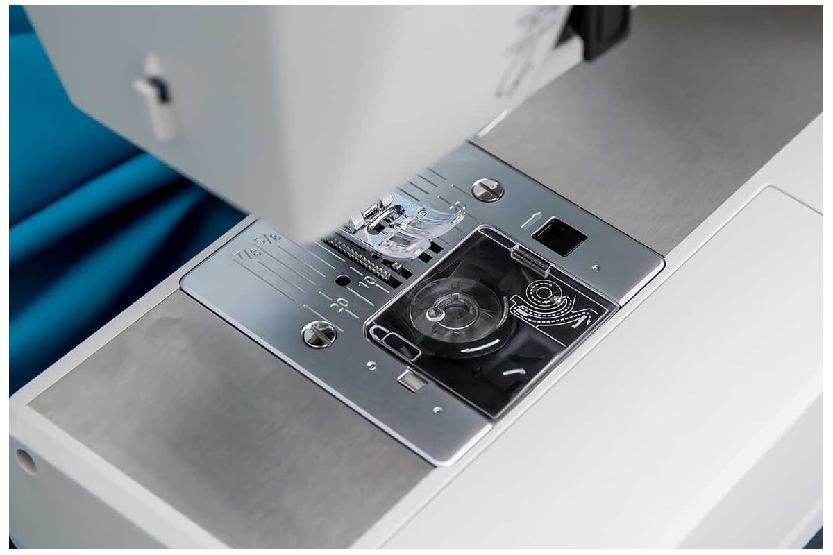 Современная светодиодная подсветка и оптимальный угол обзора позволяют долго и комфортно работать на швейной машине