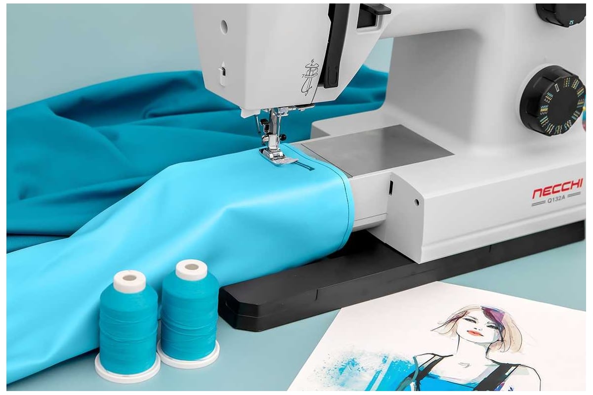 Современная швейная машина с мощным двигателем в 90 Вт и семи полосным транспортером ткани для точного и быстрого шитья! Дополнительный столик образует большую рабочую поверхность для удобной работы с объемными и готовыми изделиями. Ткань ровным полотном попадает под лапку, строчка получается идеальной как на промышленных машинах! Такие параметры позволяют использовать модель NECCHI Q132A для работы с любой тканью, из которой изготавливают одежду. От самой тонкой и трикотажной, до самых плотных и толстых материалов.