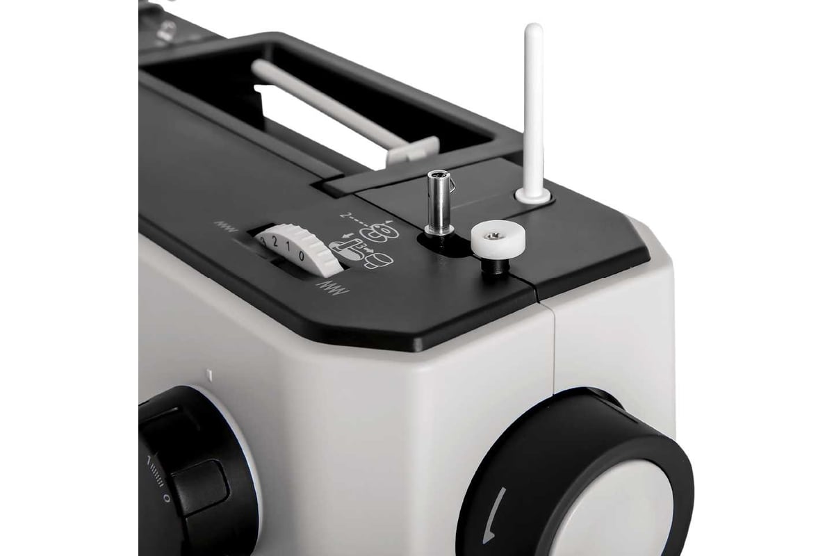 Дополнительный стержень в комплекте для второй катушки позволяет легко менять катушки для намотки шпульки и использовать двойную иглу