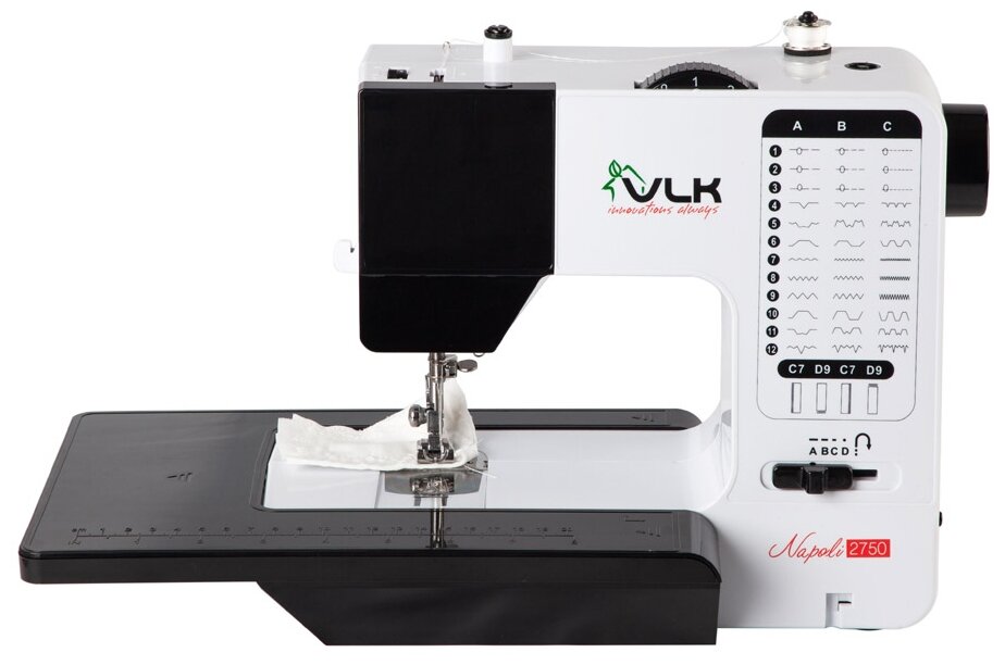 скорость шитья: 240 - 270 об/мин, размер иглы: #14, длина стежка: 1,5/2,5/3,5 мм, обработка петель и пришивание пуговиц, регулировка натяжения нити, регулировка скорости шитья, педаль управления, прямой и обратный ход при шитье, функция автоматической намотки нити, пошив до четырех слоев обычной и джинсовой ткани, Отсек для аксессуаров, выдвижной столик, встроенная LED подсветка