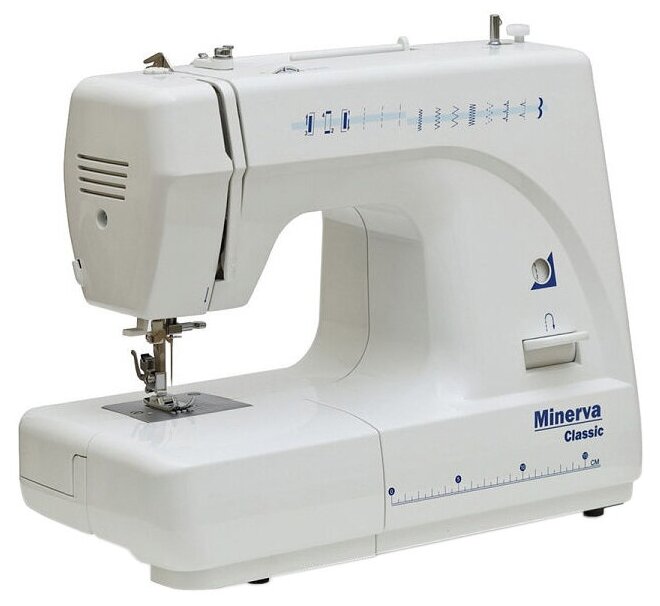 Minerva Classic оборудована качающимся челноком вертикального типа, который отличается простотой конструкции, надежностью и плавностью хода. Арсенал возможностей машины состоит из 12 операций, одна из которых отвечает за выметывание бельевой петли в полуавтоматическом режиме, а остальные за создание всевозможных строк. К дополнительным преимуществам, повышающим комфорт при шитье, относятся яркая подсветка рабочей зоны, ручное устройство обрезки нити, съемная рукавная консоль и нитевдеватель