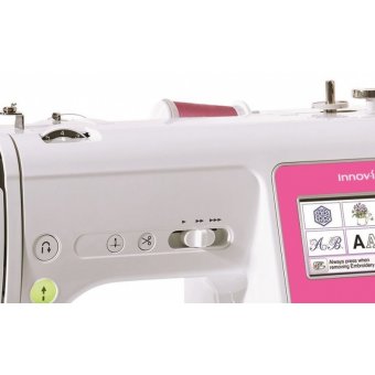 - сенсорный экран, LED освещение, функция Мои строчки, комплект листов с координатной сеткой, комплект пялец; лапка для выстрачивания монограмм, лапка для потайной строчки, лапка для вышивания,