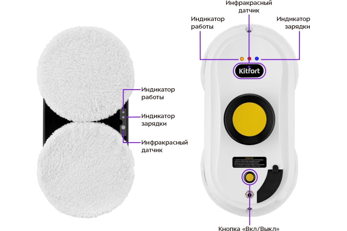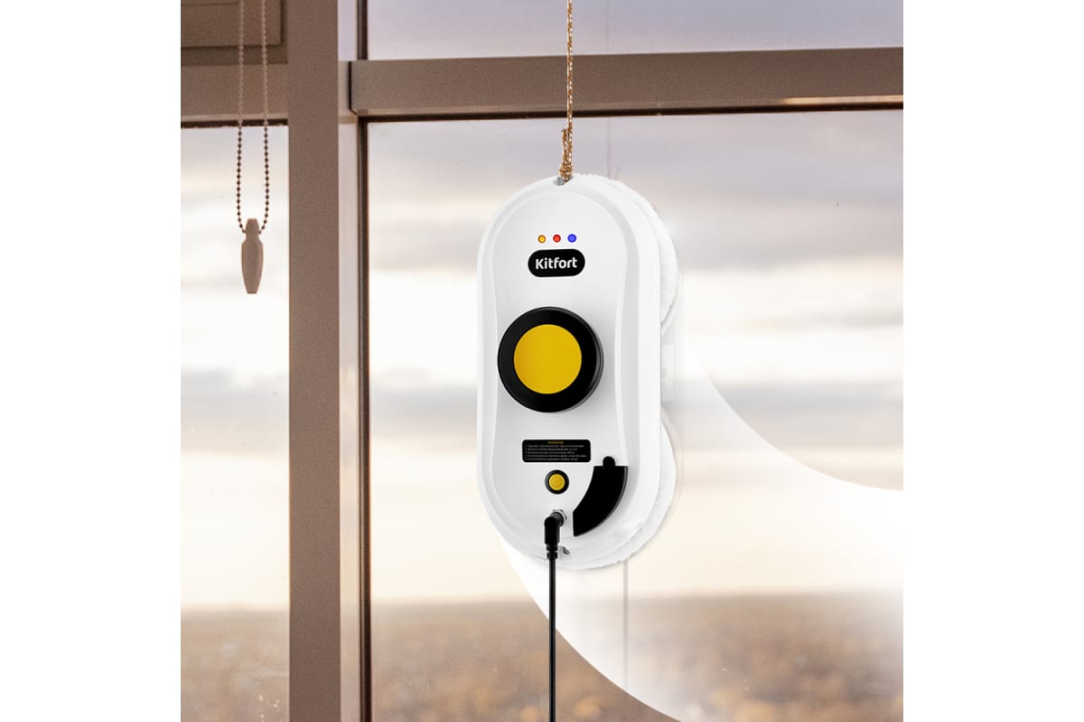 Робот КТ-5188 предназначен для мытья стеклянных, кафельных и зеркальных поверхностей. Устройство оснащено вентилятором, который создает разрежение между дном робота и очищаемой поверхностью, благодаря чему робот удерживается на гладкой вертикальной поверхности. К двум держателям тряпок на дне робота крепятся чистящие тряпки. В комплекте 5 пар чистящих тряпок, поэтому вы можете их менять во время уборки. Тряпки оттирают и впитывают грязь. Прибор укомплектован страховочным тросом, поэтому вы можете использовать робот для высоких или широких окон. На случай внезапного отключения электричества робот снабжен резервной системой питания, которая будет удерживать робота на окне около 20 минут.