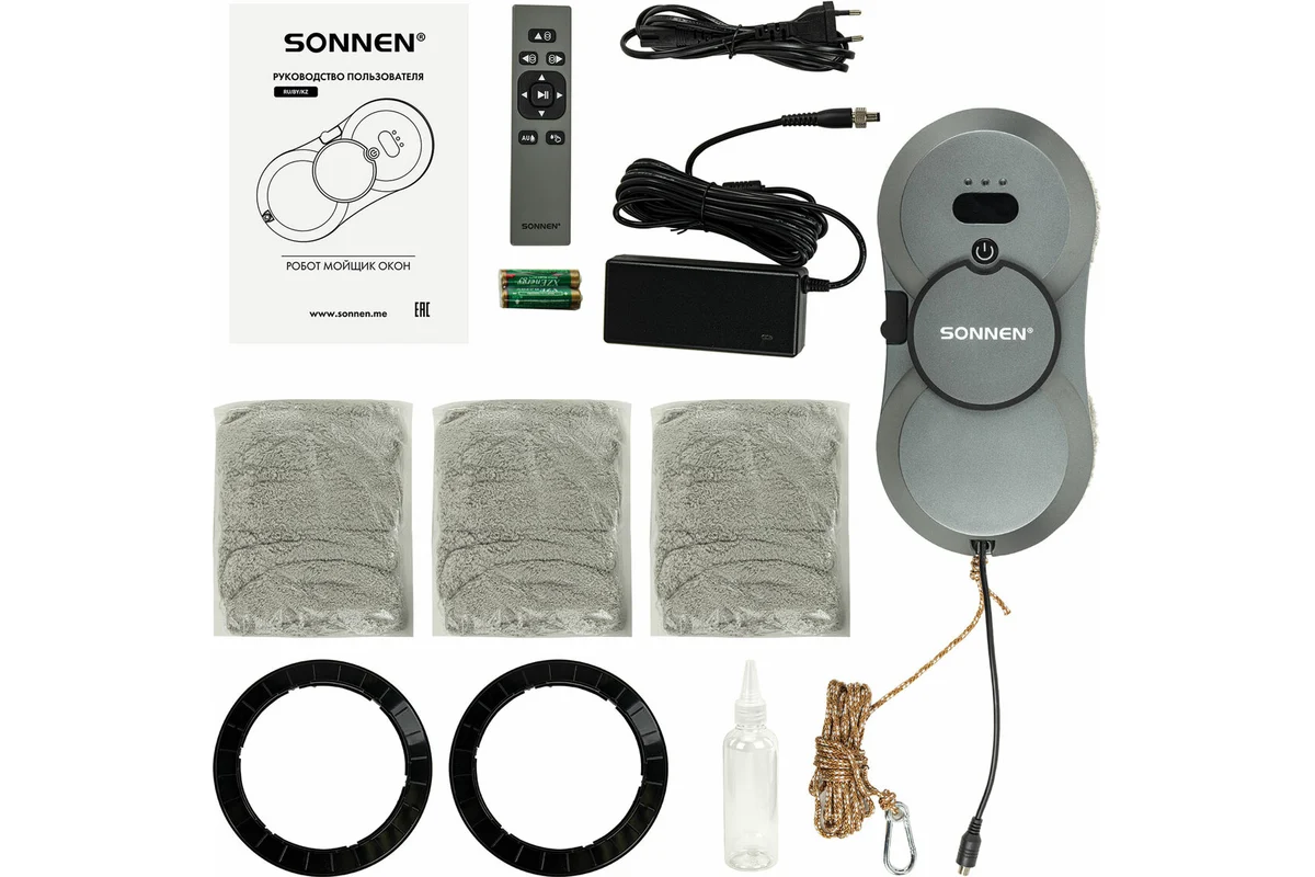 Робот-мойщик окон SONNEN Tech RWC-123 SPRAY не только сделает окна чистыми, но и обеспечит безопасность покупателя. Теперь не придется рисковать и мыть окна снаружи, робот с легкостью очистит все труднодоступные места за вас. Мощности в 80 Вт достаточно, чтобы робот смог очистить 1 м2 за 3 минуты.