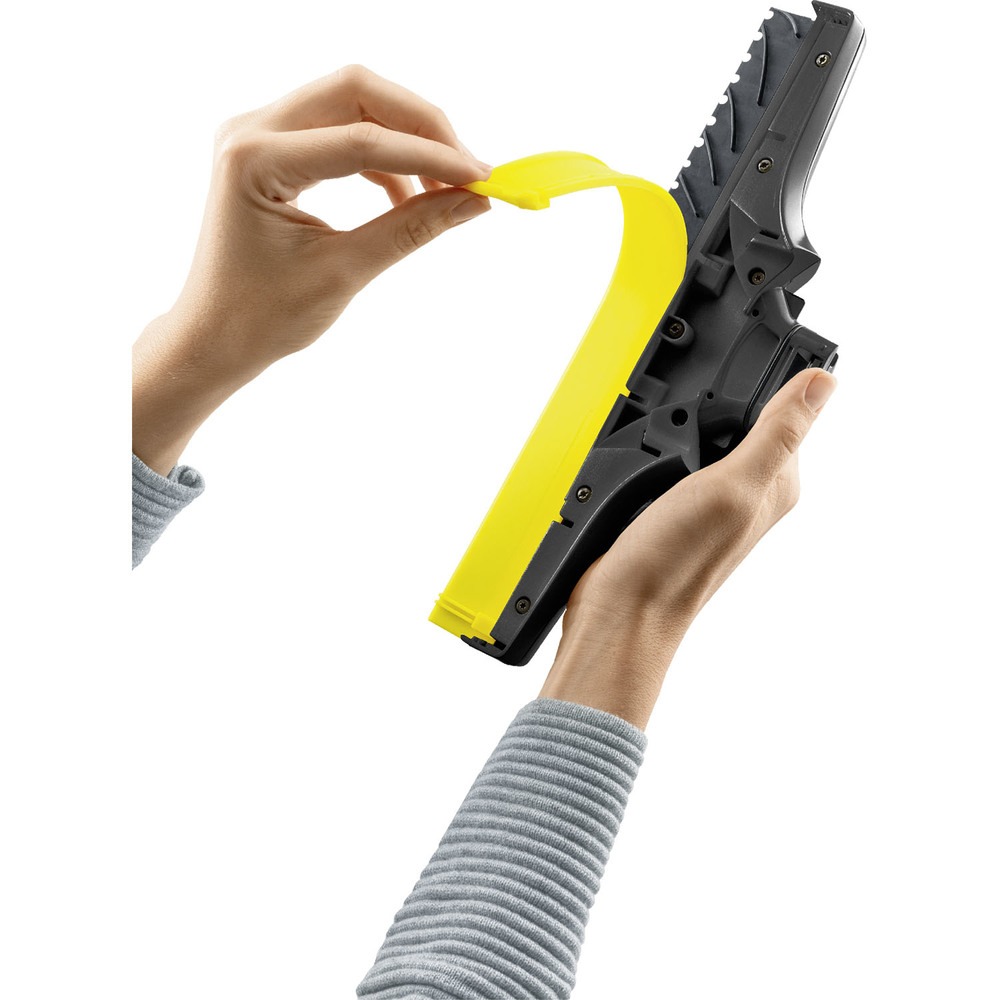 Аккумуляторный оконный пылесос WV 6 Plus Multi Edition впечатляет пользователей своей инновационной технологией стяжек и длительным временем работы от одного заряда аккумулятора. Удлиненная стяжка позволяет удалять излишки жидкости со всех поверхностей без перерывов.