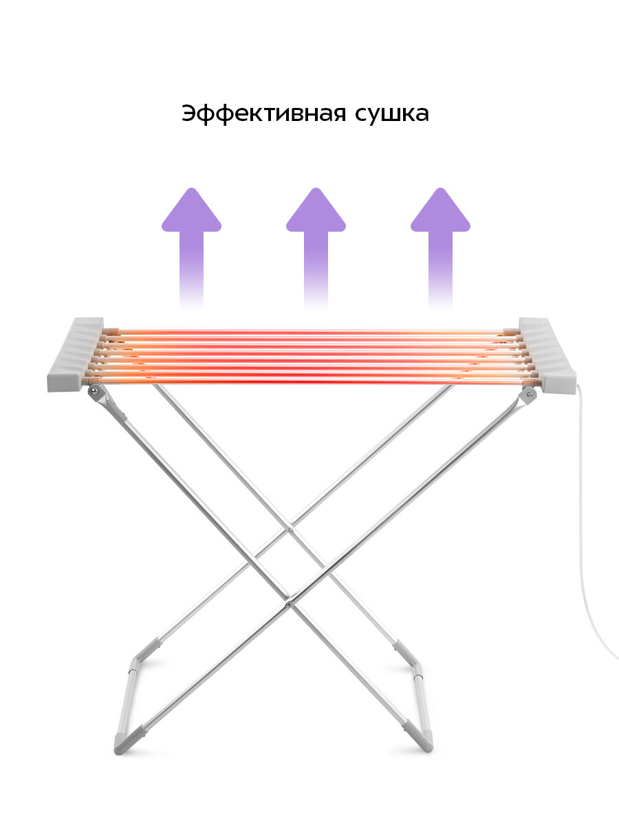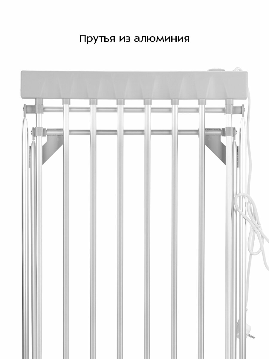 Прутья электрической сушилки для белья выполнены из алюминия, который обеспечивает отличную теплопроводность и высокую прочность. Это гарантирует эффективную сушку и долгий срок службы устройства, сохраняя форму и качество вещей.