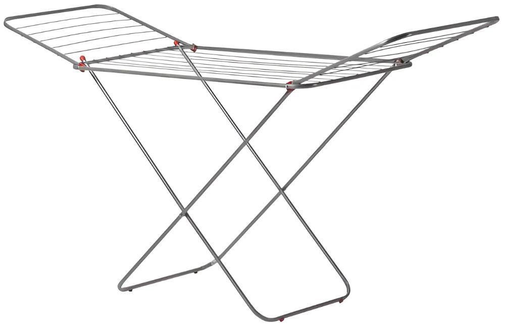 Сушилка выполненная из металла и пластика. Складная сушилка для вещей – это лучший помощник в доме, ведь она не занимает много места, ее удобно хранить в сложенном виде за шкафом, освободив пространство комнаты и спрятав от постороннего взгляда. За счет ее легкого веса, ее просто перемещать и убирать. Пластиковые колпачки на ножках сушилки защищают пол от царапин.