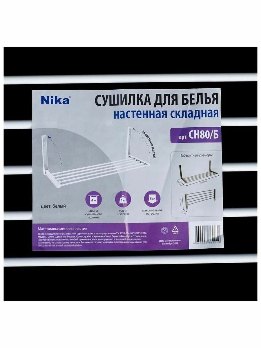 Компактная складная настенная сушилка для белья. Идеальный вариант для небольших помещений. Сушилка выполнена из качественных высокопрочных материалов. Подходит для размещения в ванной комнате и на балконе. Максимальная нагрузка - до 5 кг