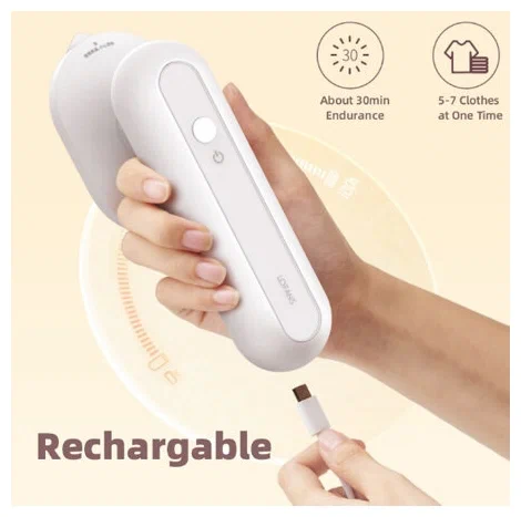 Комплектация: мини-утюг, зарядный кабель, силконовая накладка, флакон для воды, чехол