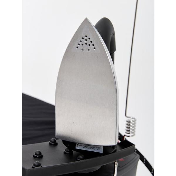 При длительном бездействии срабатывает автоматическое отключение устройства. Световые индикаторы показывают включение, готовность к работе, уровень и отсутствие воды. В комплект входят чехол, емкость для залива воды, термоизолированная подставка для утюга.