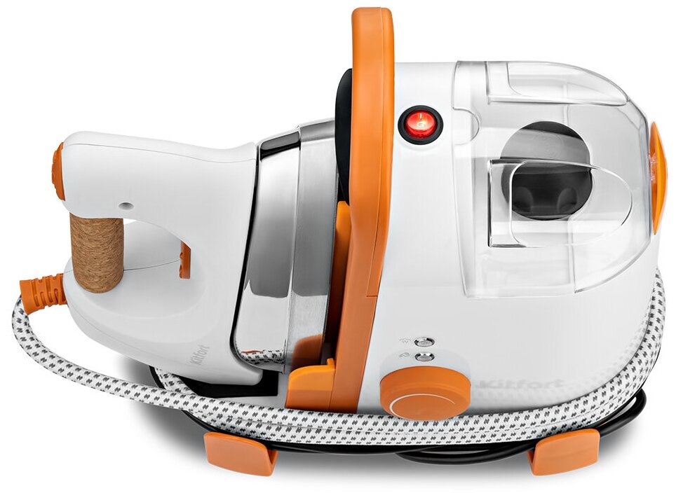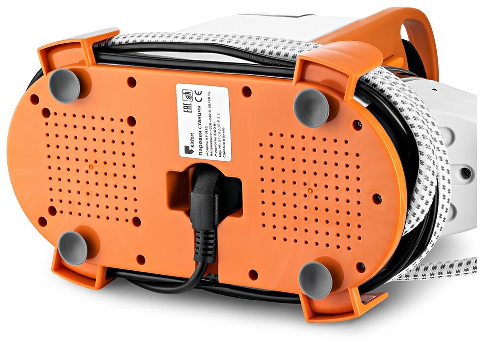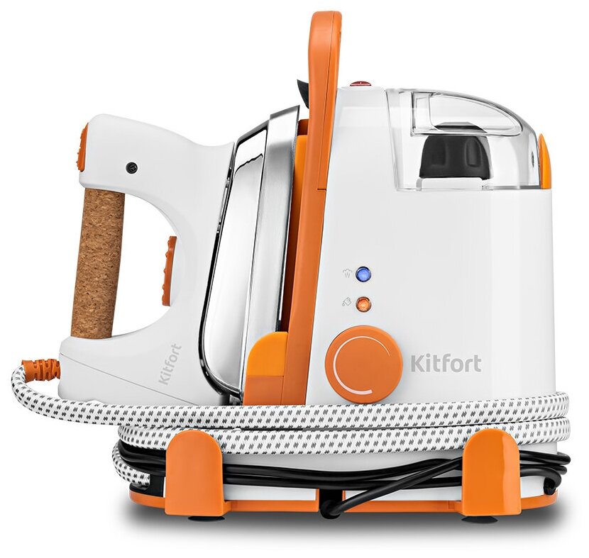 Паровая станция KT-9126 — это современное устройство для глажки, заменяющее утюг и отпариватель. Благодаря силе пара, создаваемого с помощью паровой станции, можно эффективно гладить постельное белье и полотенца, сложенные в несколько слоев. Сам утюг имеет небольшой вес и алюминиевую подошву, которая хорошо скользит. Такой утюг не сделает затяжек на одежде и лишних складок. Кроме глажки, паровая станция обрабатывает вещи мощной струей горячего пара, проводя чистку и дезинфекцию. Ёмкость бойлера в паровой станции КТ-9126 составляет 0,7 л, тогда как в утюгах в среднем 300 мл. Паровая станция KT-9126 оповестит вас, если вода в бойлере закончится. В комплекте идет воронка, с помощью которой можно легко налить воду в резервуар. Кнопка «Вкл/Выкл» включает и отключает прибор, оснащена световым индикатором, который горит, когда паровая станция включена. Устройство оснащено регулировкой уровня подачи пара, что позволит вам прогладить и отпарить вещи из различных тканей. Кнопка подачи пара может быть зафиксирована, чтобы подавать пар непрерывно и при этом не нажимать на кнопку. С помощью паровой станции вы можете проводить горизонтальное и вертикальное отпаривание. Благодаря мощной струе пара можно гладить даже полотенце, сложенное в несколько слоёв! Также утюжок может работать как обычный утюг и проводить сухую глажку вещей. Температуру нагрева подошвы можно менять при помощи регулятора уровня нагрева утюга в диапазоне 50–150 оС. Минимальная температура утюга подходит для синтетических тканей, средняя — для шерсти и шелка, а высокая — для хлопковых и льняных тканей. Лёгкая и компактная конструкция, и закругленные углы базы делают парогенератор удобной для перемещения и хранения, особенно если вы хотите оставить систему в шкафу, когда она не используется. Длина шланга 1,7 м. На подставке расположены держатели для шланга и шнура, которые обеспечивают компактное хранение устройства.