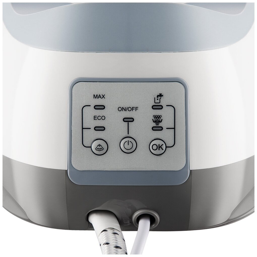 REDMOND RSS-5906 — супермощный парогенератор с функцией вертикального отпаривания, который за пару минут приведет в порядок мятое белье, освежит одежду перед выходом и продезинфицирует детские вещи.