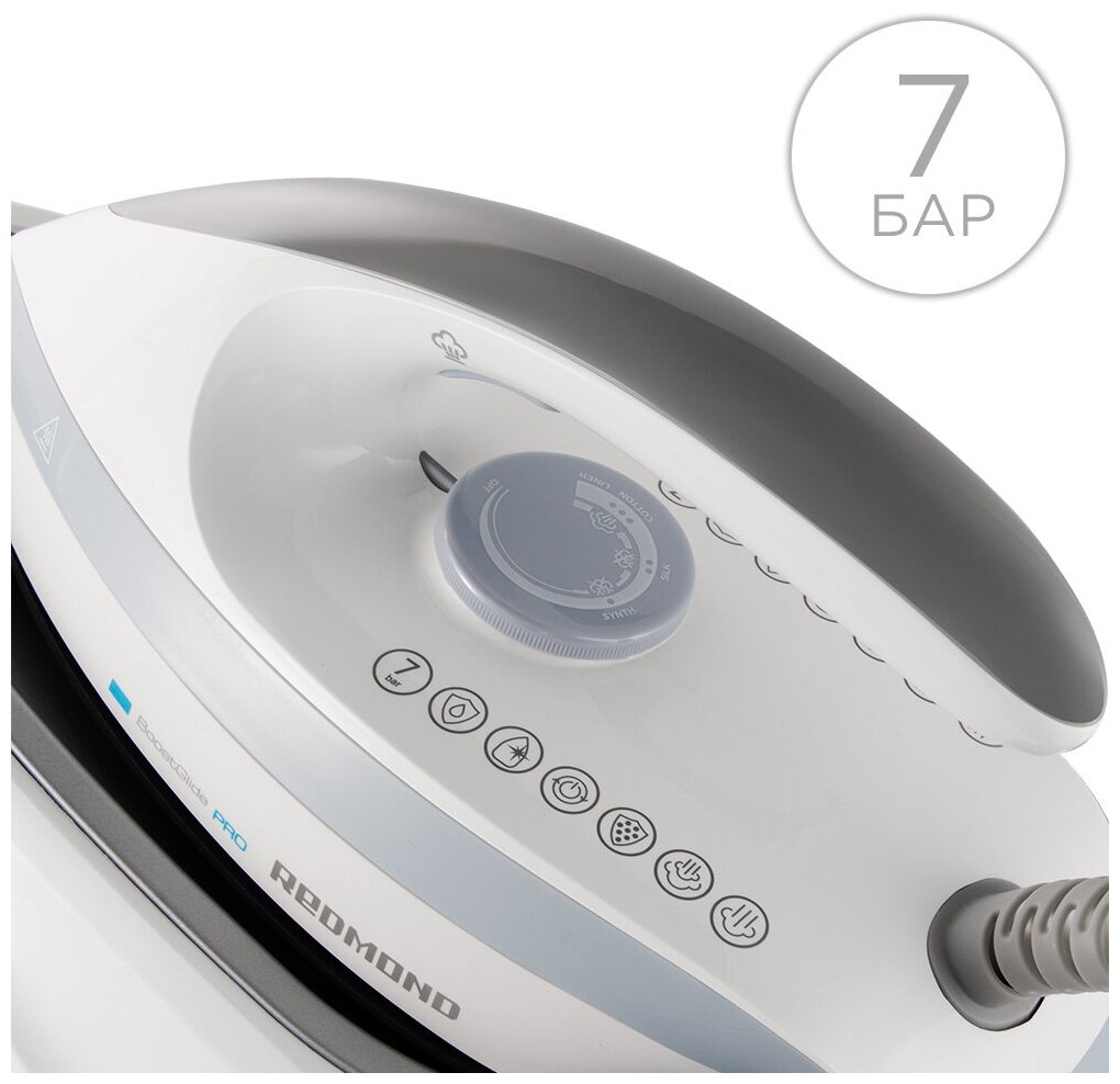 На подошву утюга RSS-5906 нанесено антипригарное керамическое покрытие. Среди преимуществ этого материала — равномерное распределение и сохранение тепла, плавное скольжение по тканям разной фактуры.
