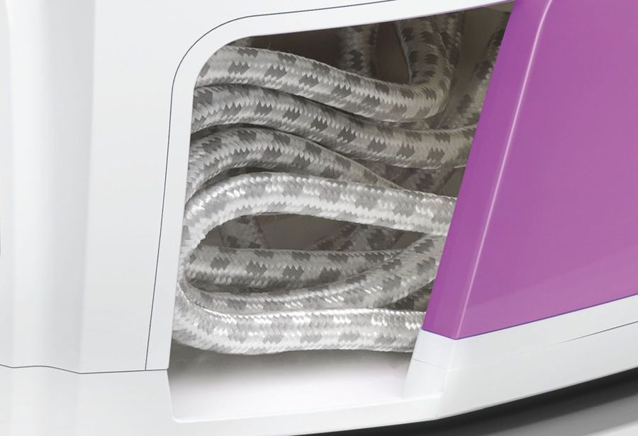 мощность 2400Вт; давление пара 4.3Бар; подача пара 100г; паровой удар; вертикальное разглаживание; автоотключение; очистка от накипи; цвет фиолетовый