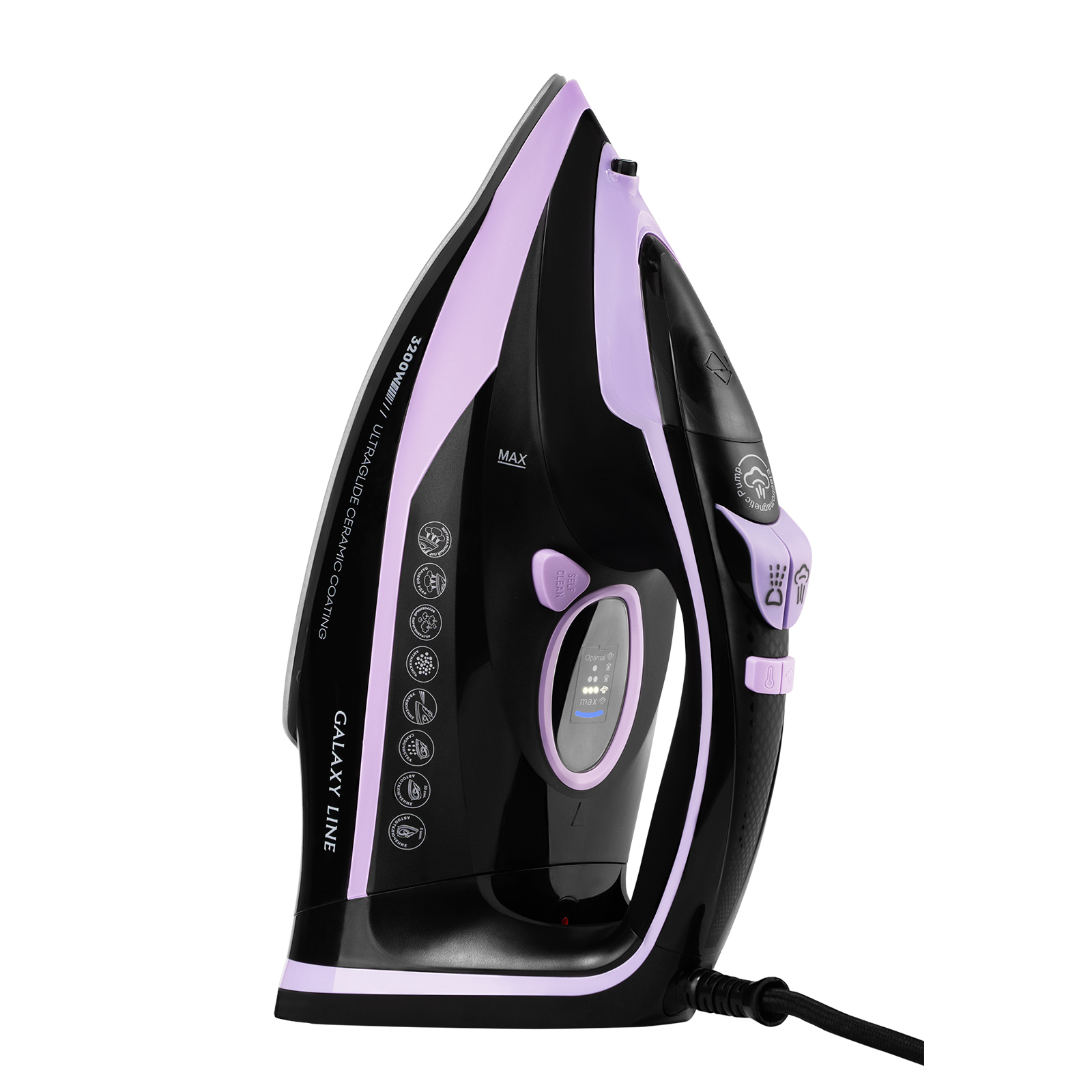Мощный паровой утюг GALAXY LINE с вертикальным отпариванием и керамической подошвой станет незаменимым помощником в уходе за вещами после стирки.