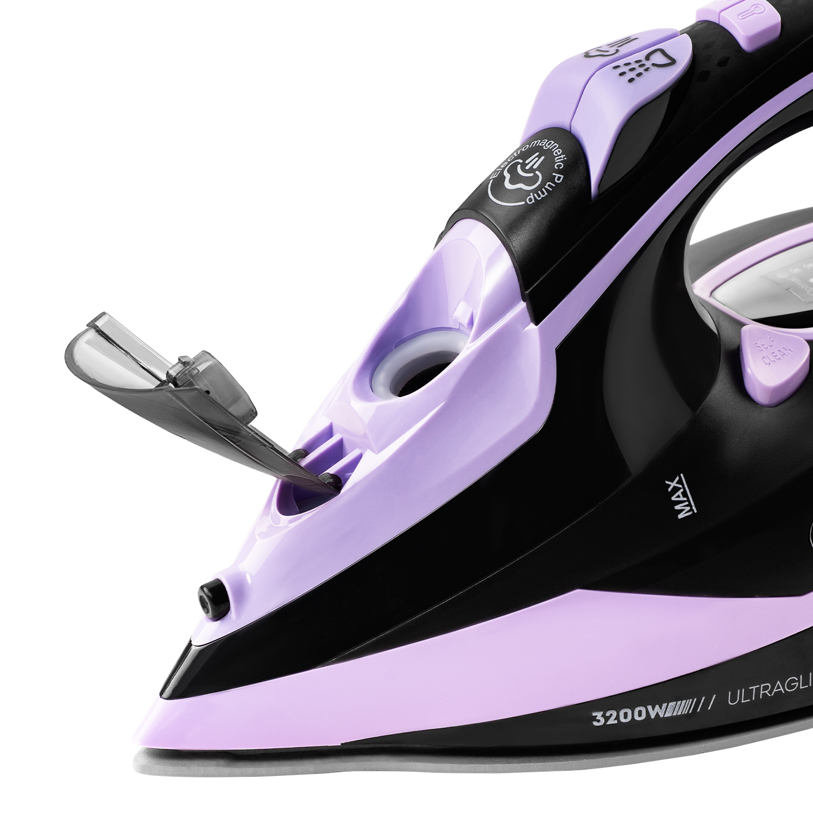 Мощность 3200 Вт обеспечивает быстрый нагрев и эффективное отглаживание и отпаривание тканей.