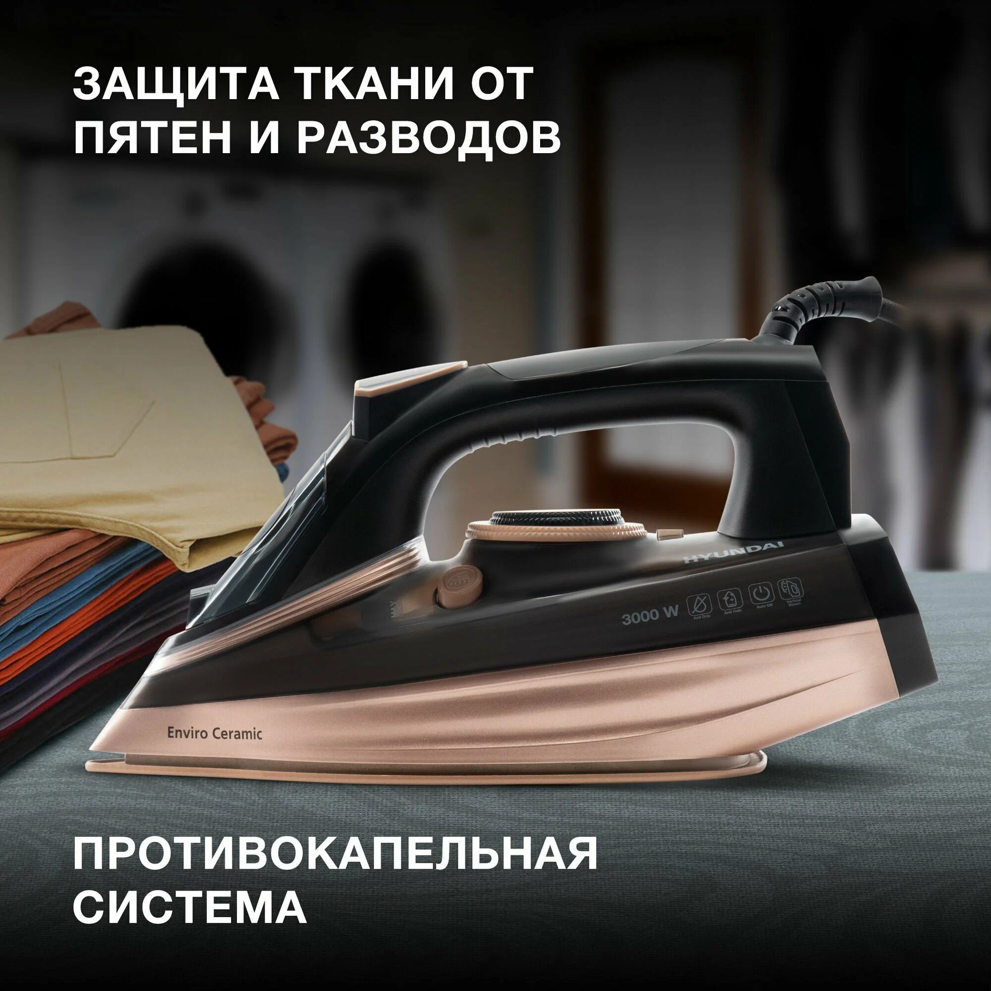 Hyundai H-SI01222 оснащён противокапельной системой, поэтому под ним не остается следов от воды. При длительном периоде бездействия устройство отключается автоматически, не перегревается и экономит электричество.