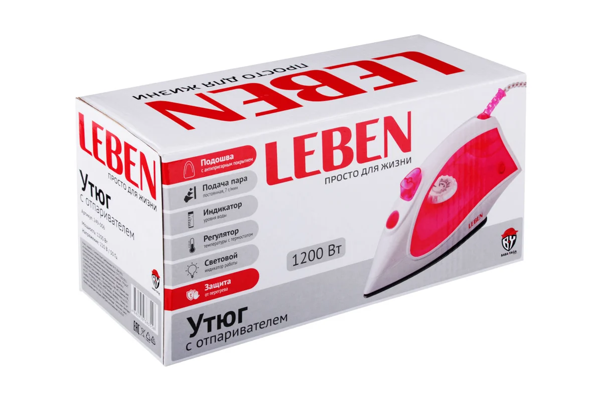 Утюг LEBEN с отпаривателем 1200 Вт, подошва антипригарное покрытие, прозрачный корпус 249-006 предназначен для глажения белья, домашнего текстиля, одежды.