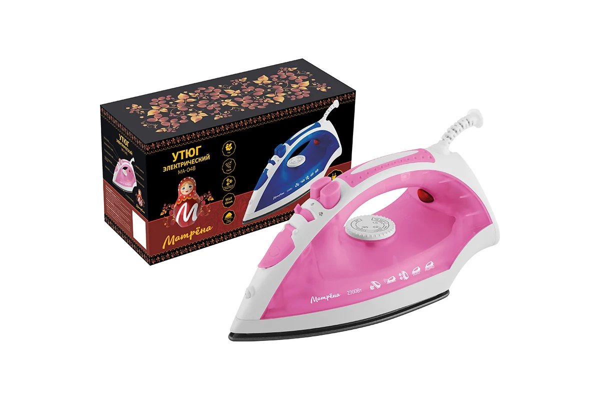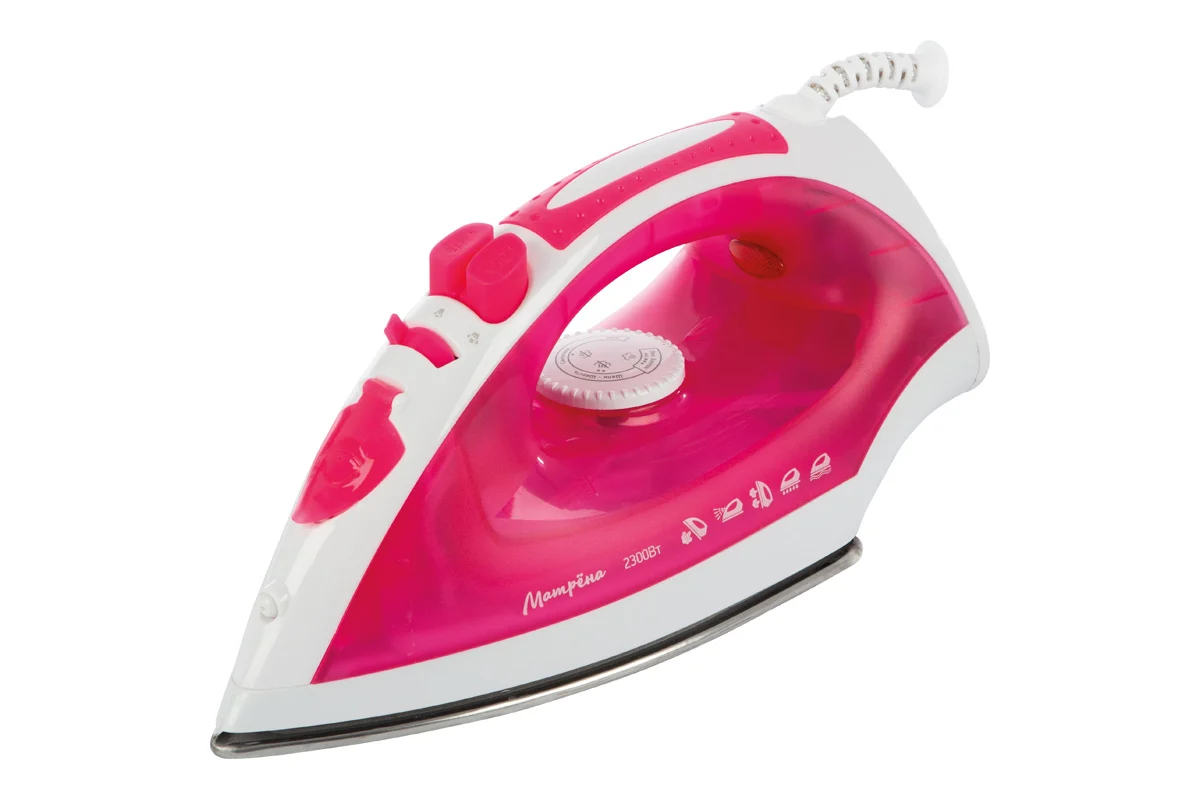 Утюг Матрёна МА-048 розовый 2300 Вт, пар, спрей, паровой удар, стальная подошва 007193 предназначен для глажения белья, домашнего текстиля, одежды.