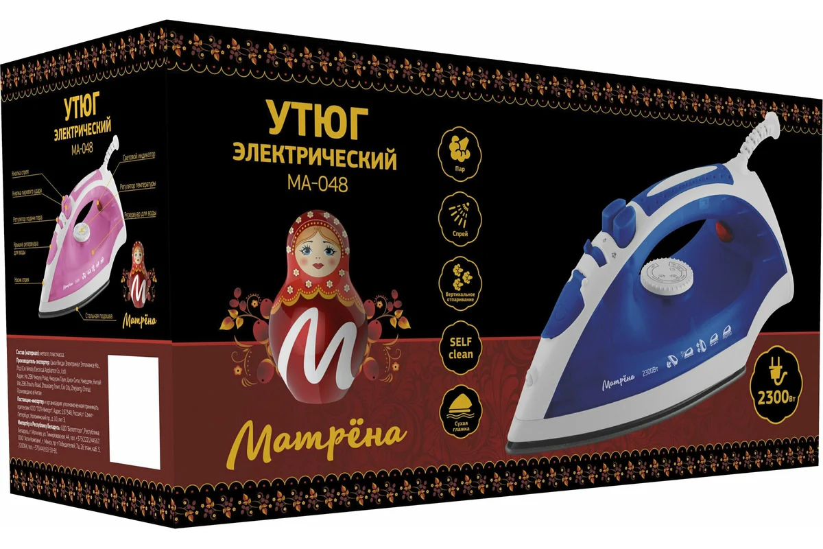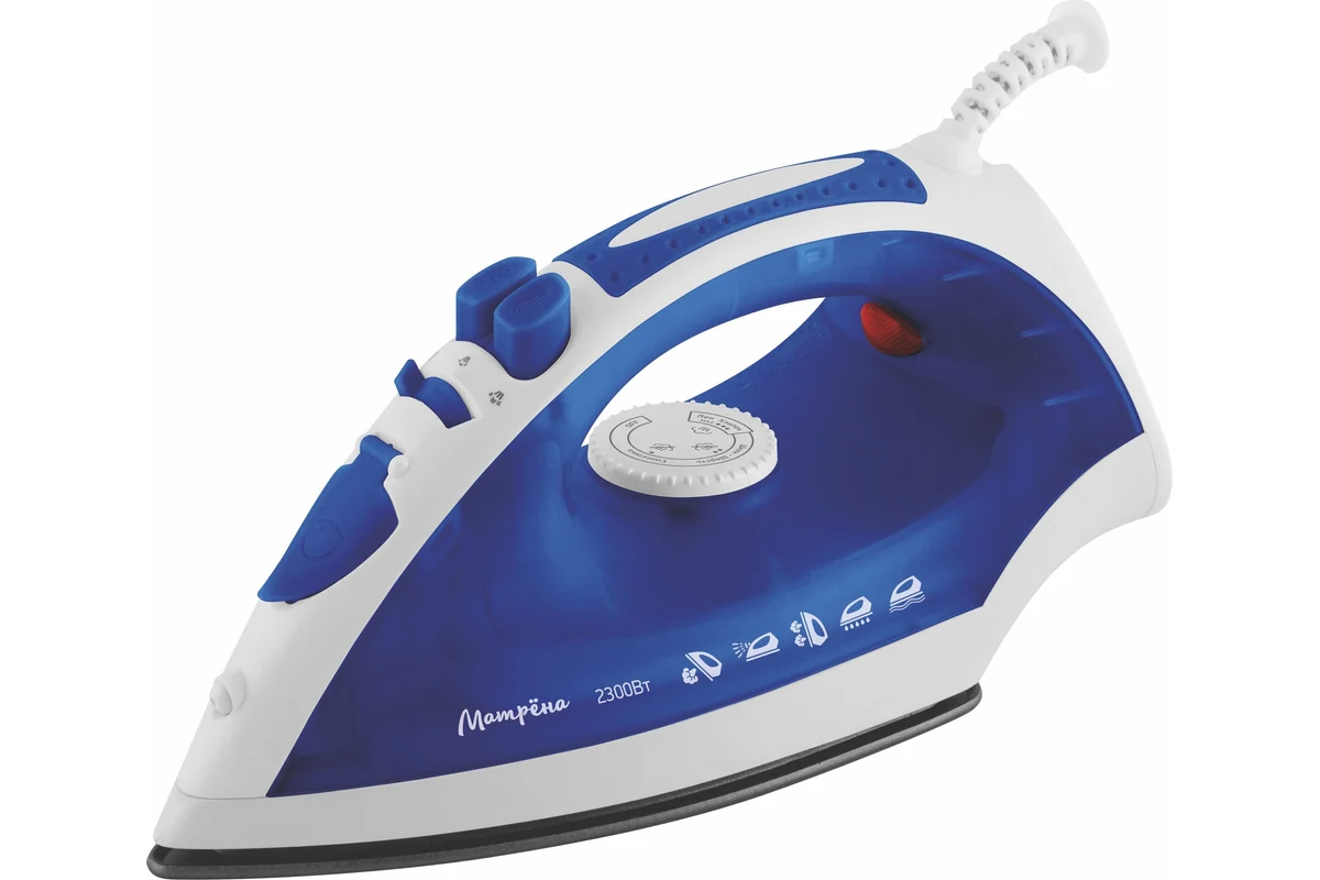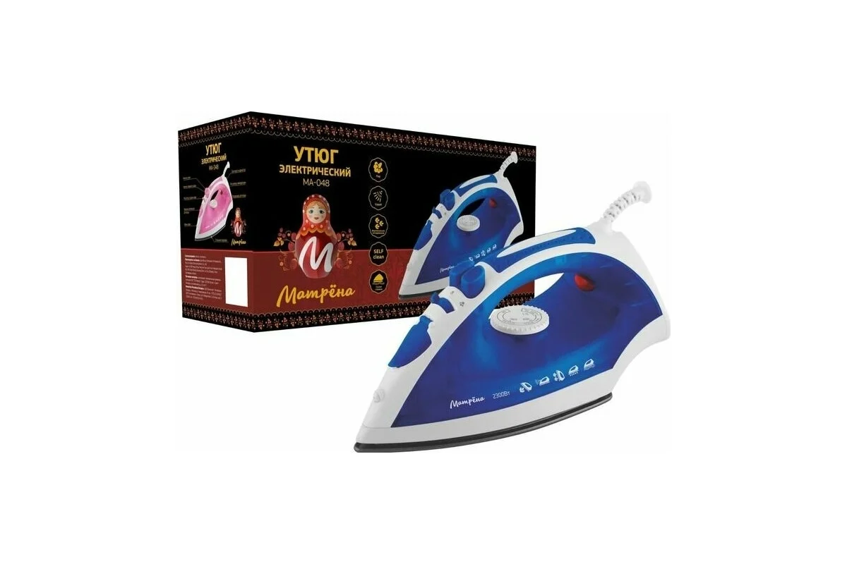 Утюг Матрёна МА-048 синий, 2300Вт, пар, спрей, паровой удар, стальная подошва 007194 способен превратить процесс глажки вещей в простое и эффективное занятие. Он обладает мощностью 2300 Вт и стальной подошвой, равномерно распределяющей тепло. Для достижения качественного разглаживания складок в данной модели реализованы система постоянной подачи пара, паровой удар, сухое глажение и функция разбрызгивания.