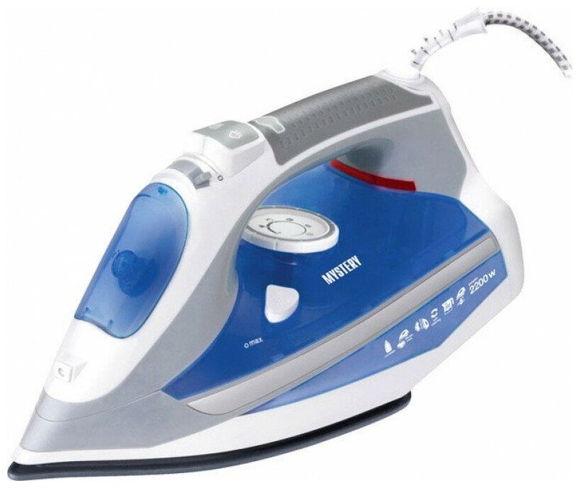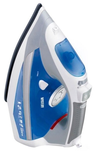 Практичный утюг Mystery MEI-2216 в приятной сине-белой цветовой гамме оптимально подходит для глажки даже деликатных тканей и, несомненно, приглянется любой хозяйке. При компактных размерах модель обладает мощностью 2200 Вт. Кабель обладает возможностью вращения на 360°. Вместительная ёмкость для воды имеет объём 300 мл, поэтому даже большой цикл глажки обойдётся без постоянного наполнения резервуара. Благодаря противокапельной системе подача пара прекращается при остывании утюга, поэтому вы можете не бояться случайно испачкать вещи при глажке. Керамическая подошва модели оснащена антипригарным покрытием, что обеспечивает надёжное использование без риска испортить ткань. Имеется функция самоочистки и система пароувлажнения. Утюг Mystery MEI-2216 позволяет осуществлять вертикальное отпаривание верхней одежды, обивки мебели, тонких тканей, костюмов и платьев максимально бережно и аккуратно.
