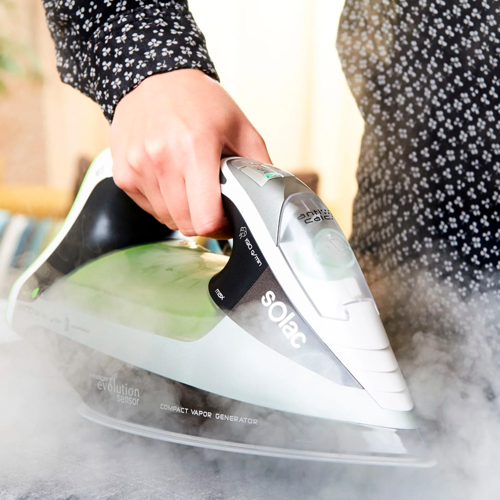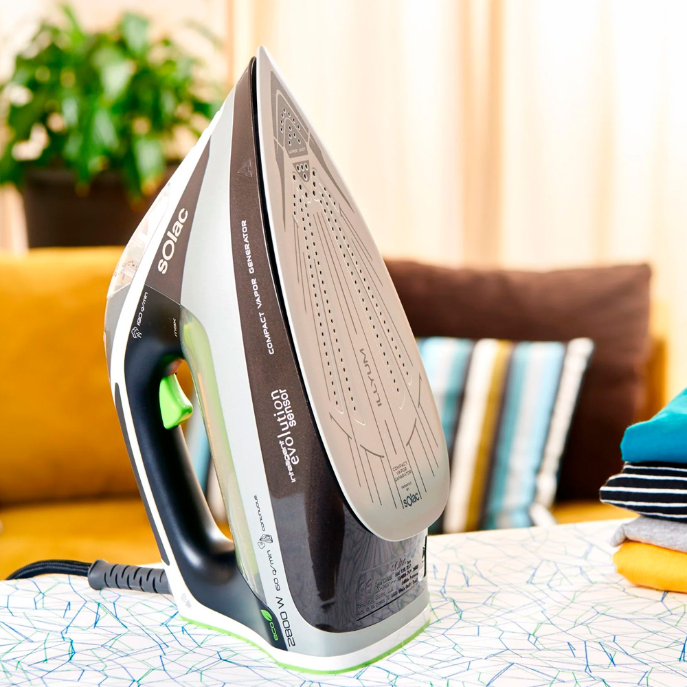 Для более быстрого и комфортного глажения утюг Solac оснащён сенсорной технологией — инновационной технологией, которая активирует подачу пара автоматически прикосновением руки, без необходимости нажимать кнопки.