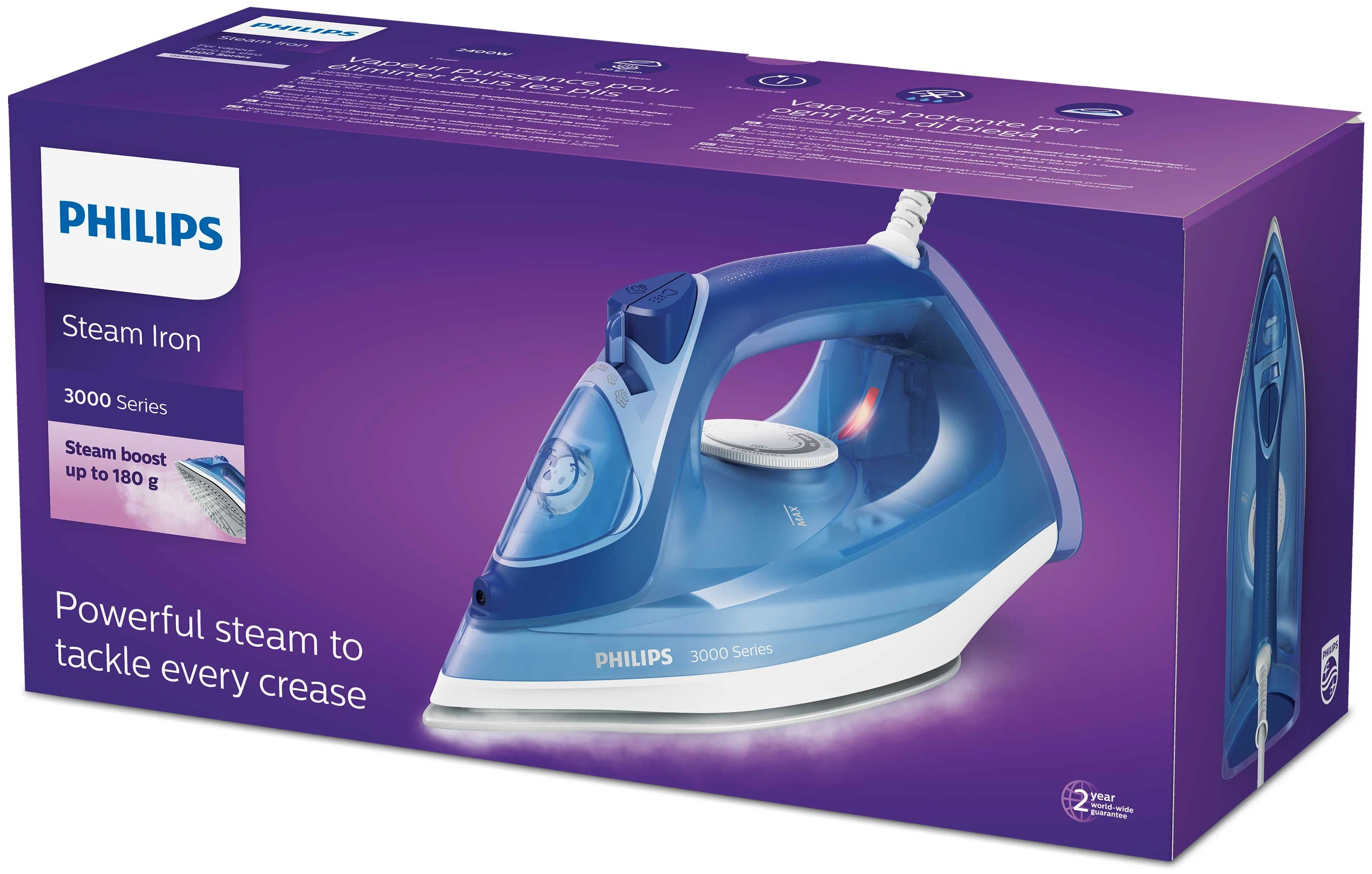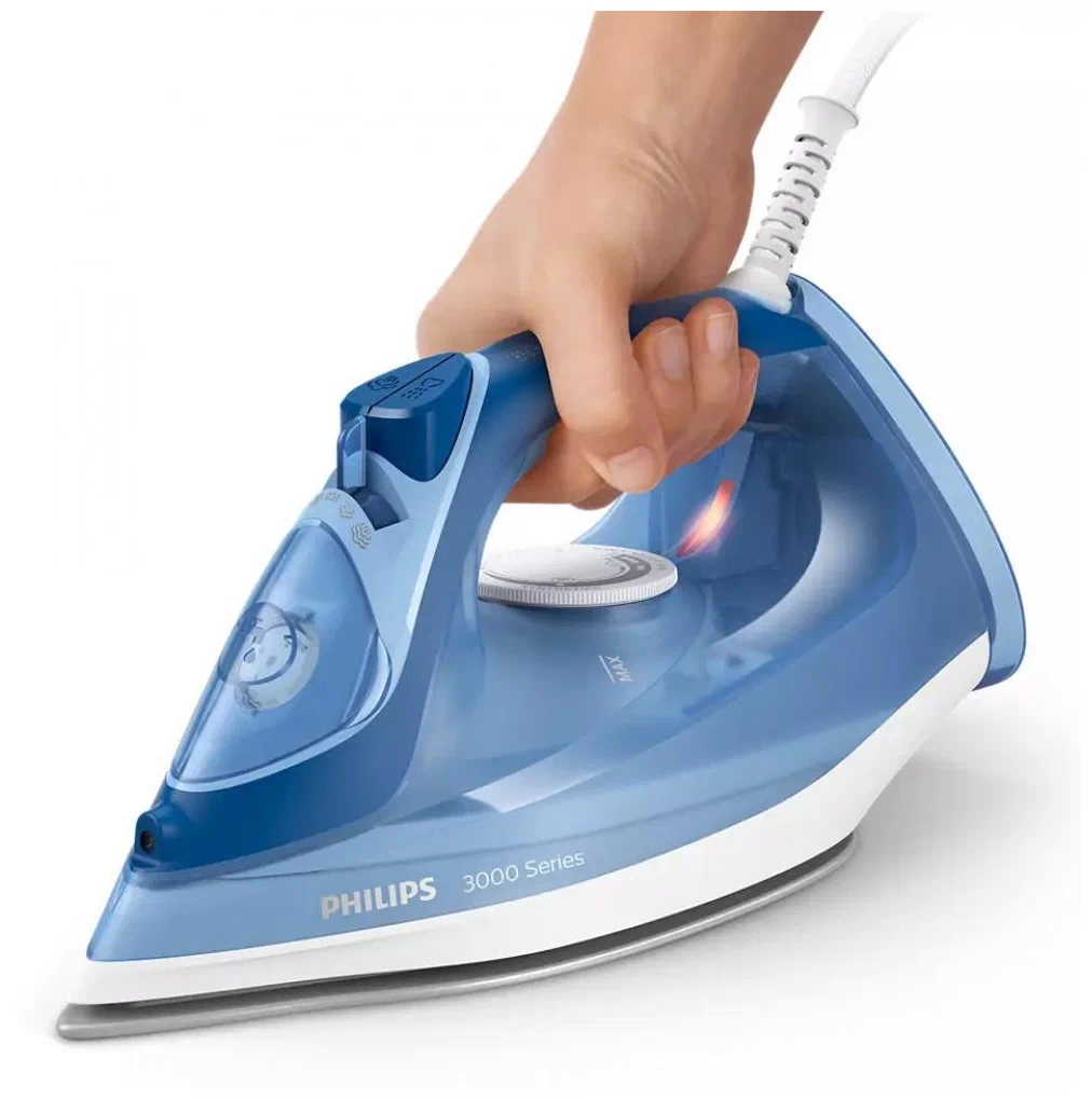 Паровой утюг серии 3000 позволяет легко разглаживать даже жесткие складки благодаря мощной подаче пара. Керамическая подошва обеспечивает гладкое скольжение, а резервуара для воды 300 мл хватит для глажения небольшой стопки вещей даже без пополнения.