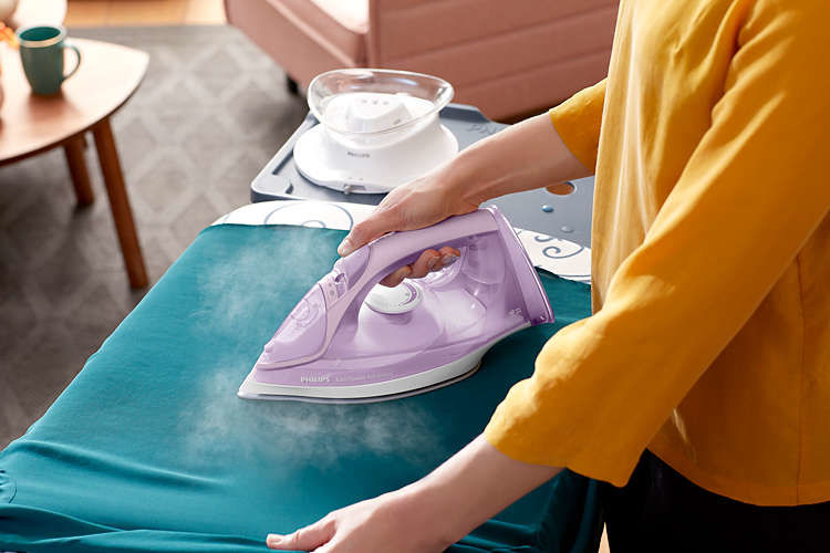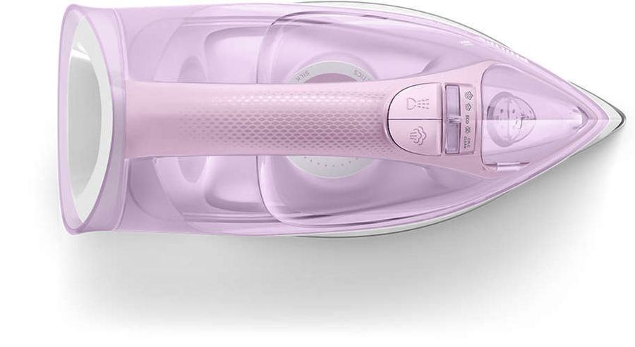 пароувлажнение; мощность: 2400Вт; паровой удар: 190г; емкость для воды: 300мл; подошва: керамическая; самоочистка от накипи; автоотключение; цвет: сиреневый и белый