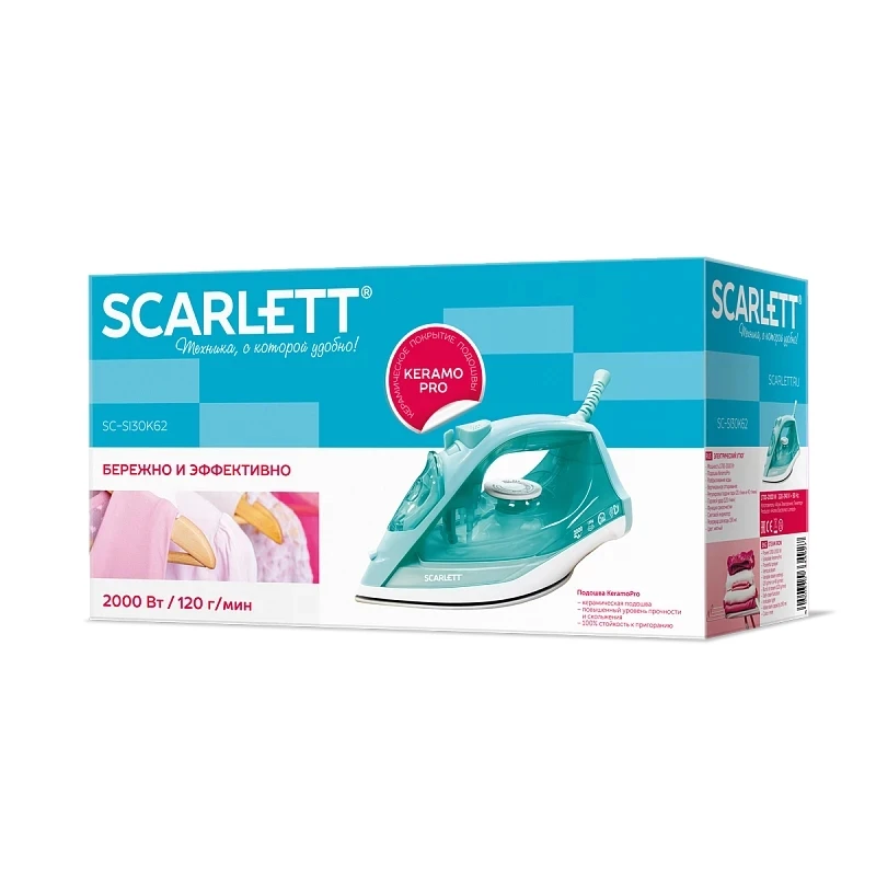 Утюг Scarlett SC-SI30K62 — мощность, бережность и эффективность в одной модели! Стильный и удобный утюг Scarlett SC-SI30K62 идеален для тех, кому важны удобство, эстетика и безупречный результат. Мощность 2000 Вт — справится с самыми сложными и плотными тканями. Керамическая подошва обеспечивает легкое скольжение и защищает одежду от повреждений. Пар для любых задач: регулируемая подача пара, мощный паровой удар для самых сложных складок. Простота в уходе: функция самоочистки продлевает жизнь утюгу и избавляет от хлопот. Незаменимый помощник для вашего безупречного гардероба