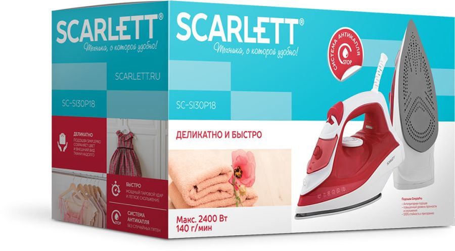 Описание: Утюг Scarlett SC-SI30P18 с пластиковым корпусом красного цвета снабжен идеально гладкой подошвой с антипригарным покрытием Simple Pro, которая надолго сохраняет цвет и внешний вид ткани.