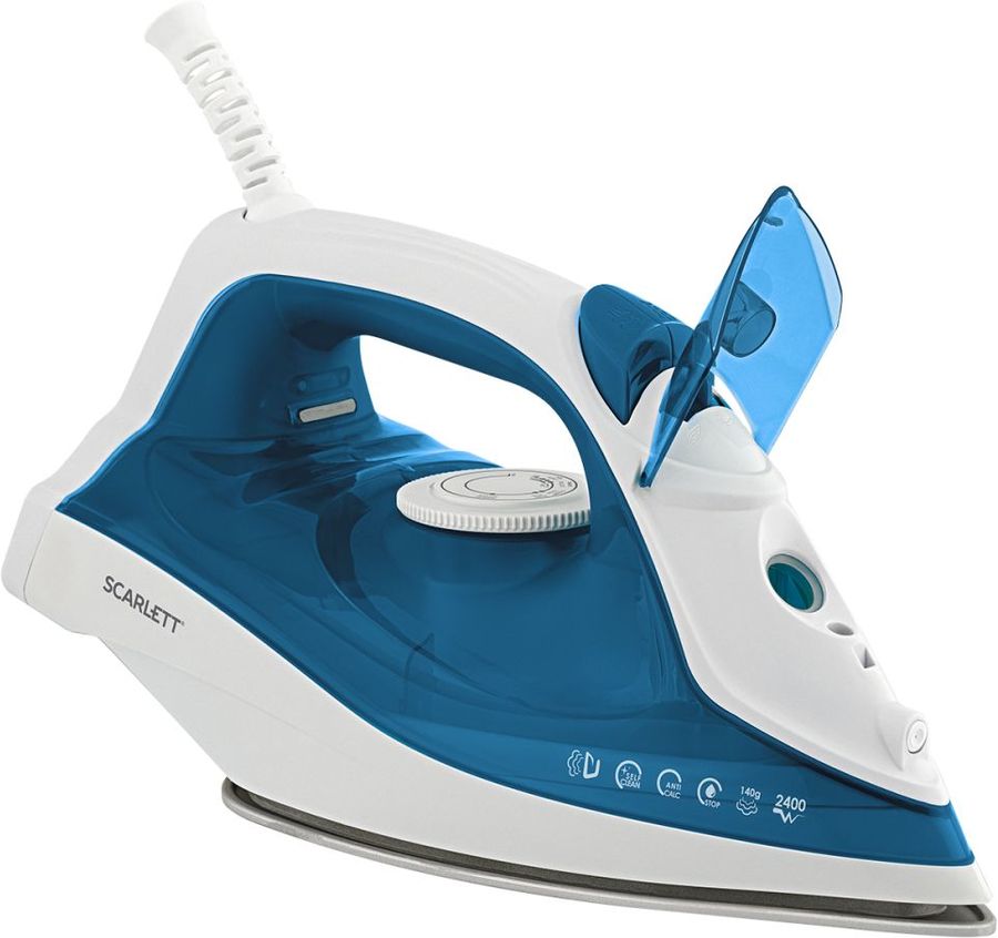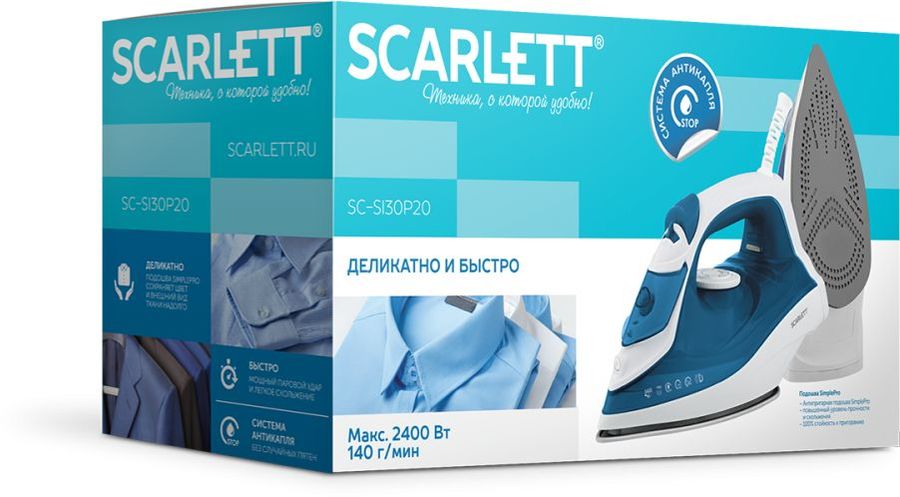 мощность: 2400Вт; паровой удар: 140г; емкость для воды: 280мл; подошва: SimplePro; самоочистка от накипи; цвет: синий