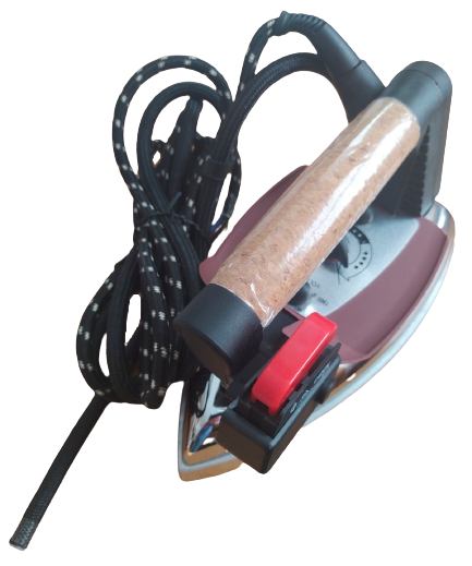 Паровой утюг с монолитной равномерно нагревающейся подошвой, отверстиями для выхода пара и эргономичной ручкой, предотвращающей запотевание рук.
