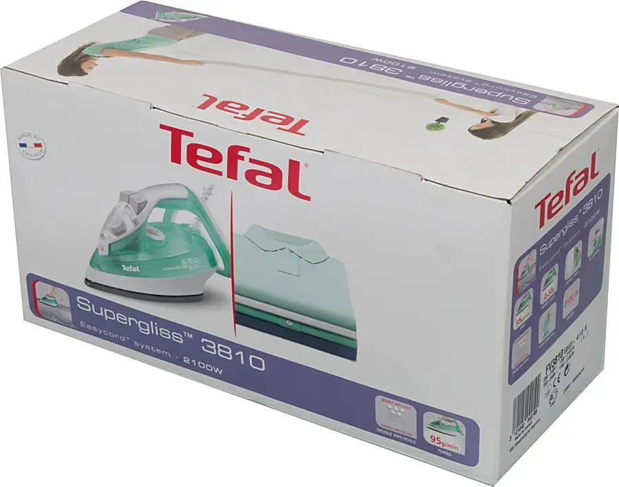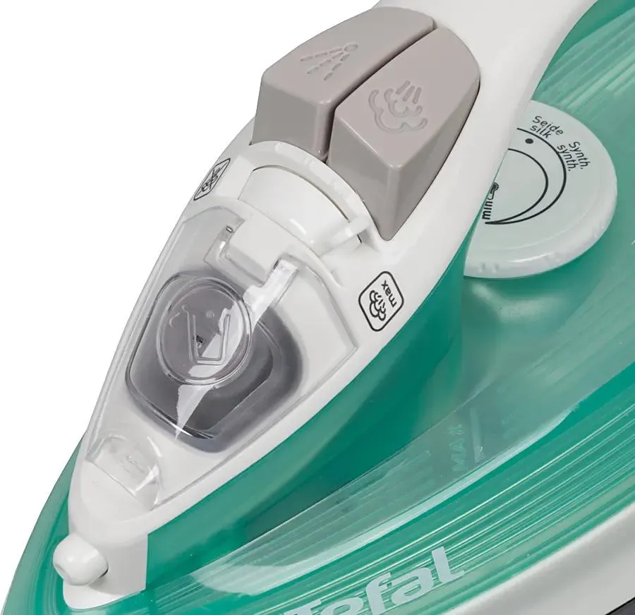 Непринужденно и легко разглаживать любые виды тканей, даже если они сильно пересушены, вам поможет утюг TEFAL FV3810, выполненный в привлекательном пластиковом корпусе. Данная модель имеет продуманную конструкцию, которая делает ее эксплуатацию более комфортной. Широкая пятка позаботится о максимальной устойчивости, а благодаря системе EasyCord шнур удерживается на определенном расстоянии от ткани, абсолютно не мешая в процессе глажки. Двойная защита от накипи позволяет заливать в резервуар утюга TEFAL FV3810 даже водопроводную воду. Его керамическая поверхность способствует идеальному скольжению, а благодаря мощному паровому удару, вертикальному отпариванию, разбрызгиванию воды и возможности регулировать пар вы сможете без особых усилий разгладить складки на любых, даже очень плотных тканях.