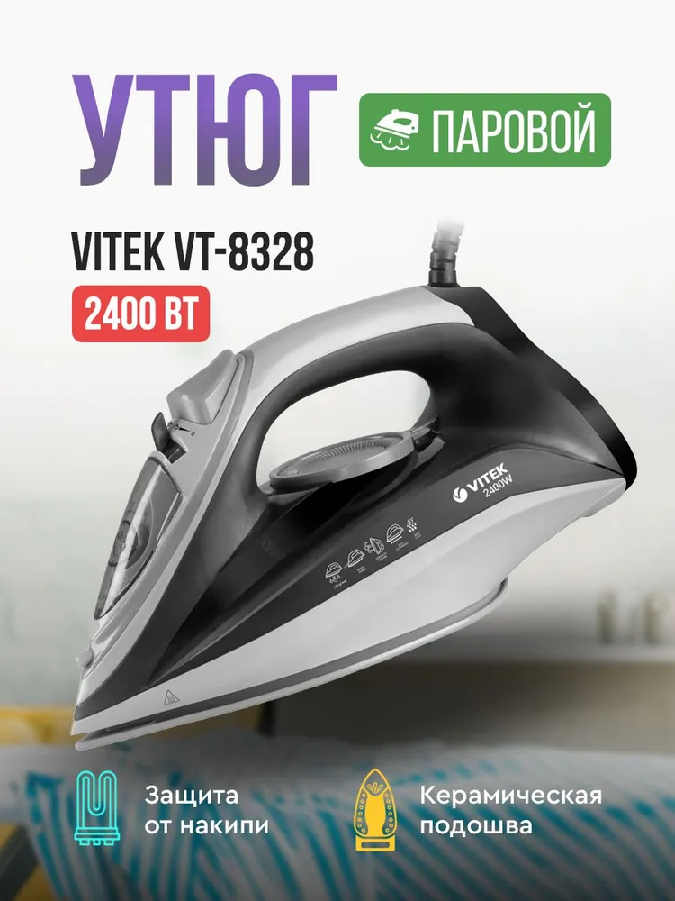 Особенности утюга, отпаривателя: Вертикальное отпаривание, Защита от накипи, Распылитель для воды