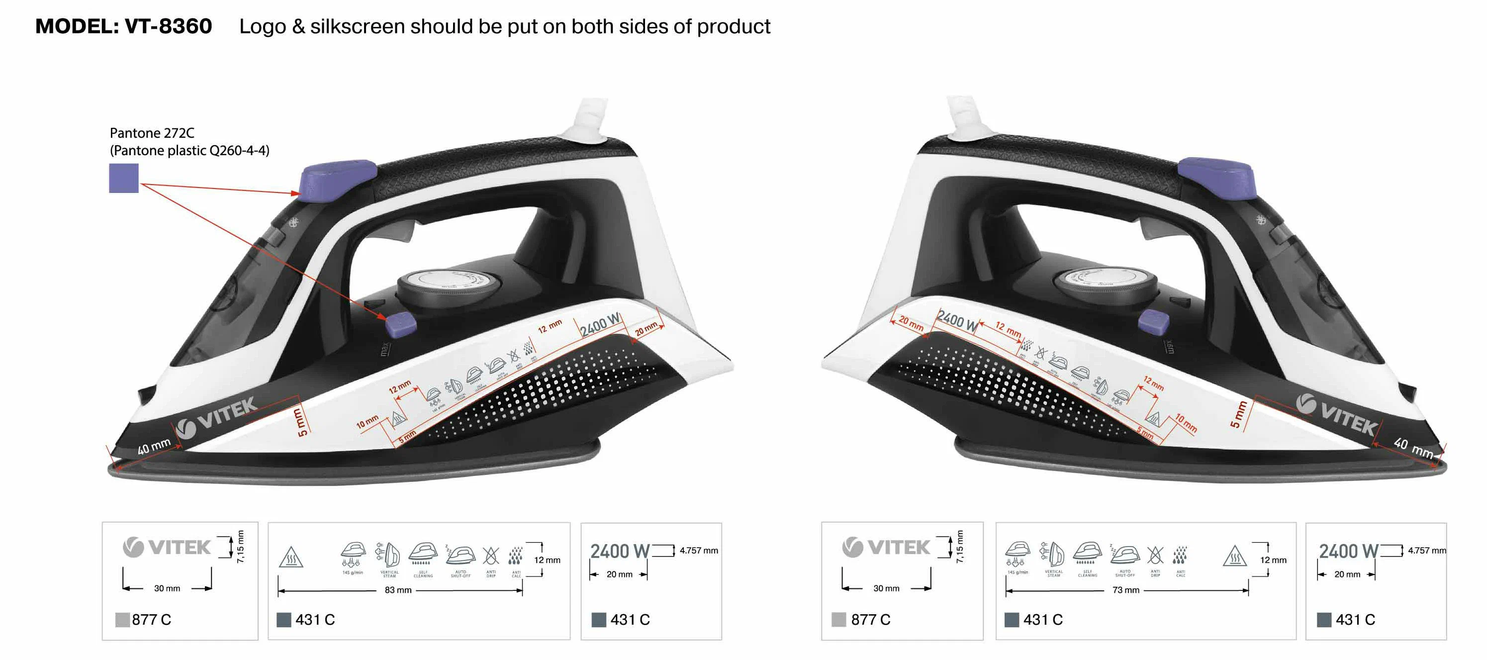 Особенности утюга, отпаривателя: Вертикальное отпаривание, Дозалив воды, Противокапельная система, Распылитель для воды