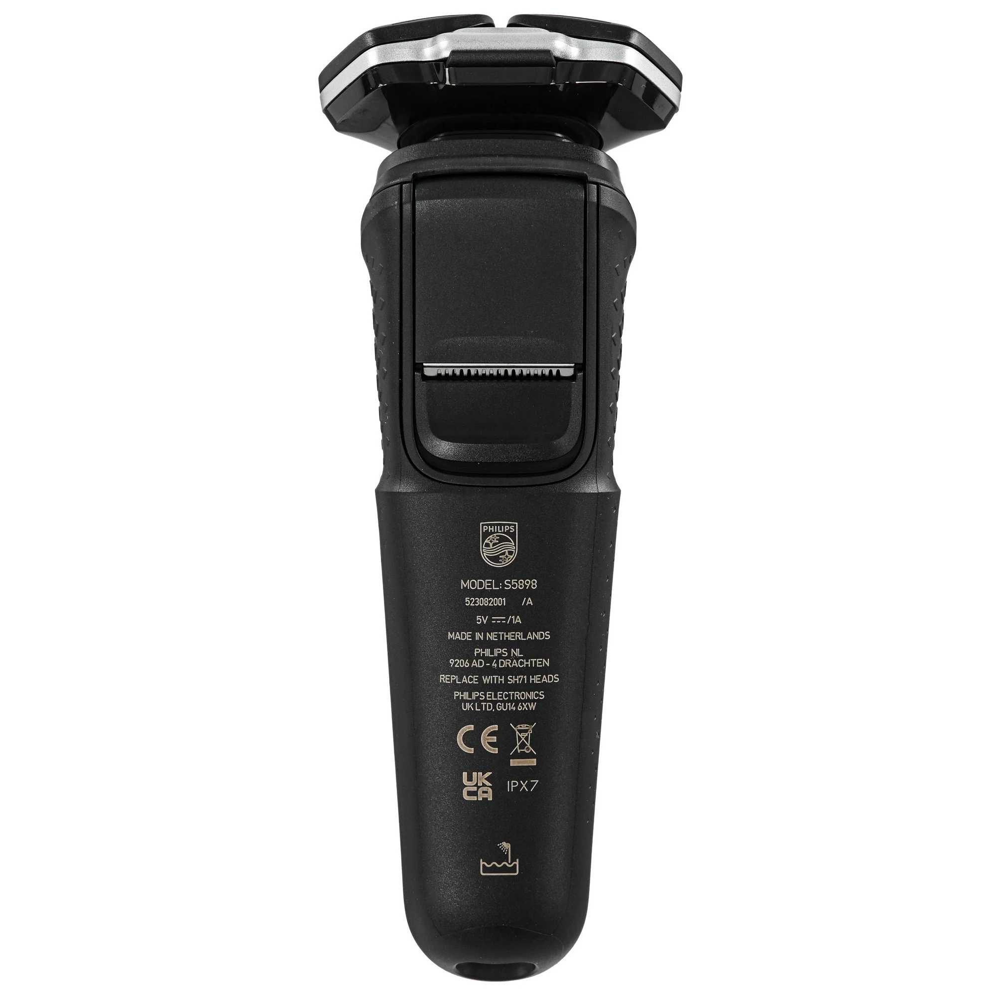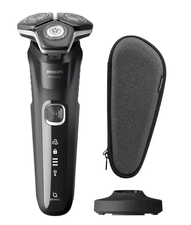 Электробритва Philips S5898/35 роторного типа подходит для сухого и влажного бритья. К 3 секциям прилагаются плавающие головки, повторяющие контуры лица в процессе. Это означает, что создать подходящие условия для бритья можно даже для чувствительной кожи. В этом также помогает технология SkinIQ, анализирующая особенности лица владельца и подбирающая к нему оптимальные условия. Например, она распознает тип щетины и ее густоту. Устройство может работать от аккумулятора до 1 ч при условии полной зарядки. Его можно брать с собой – для безопасности у него есть функция блокировки кнопок и дорожный чехол. Дополнительно предусмотрена возможность использовать Philips S5898/35 в качестве триммера.