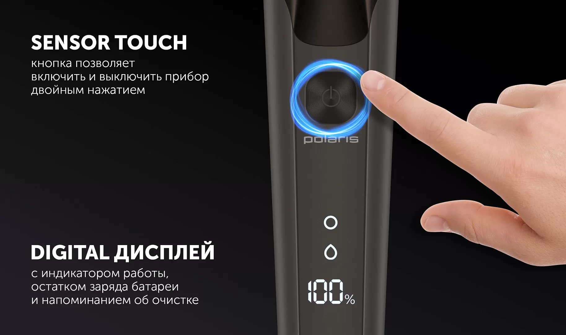 Цифрой LCD дисплей с индикатором работы, остатком заряда батареи и напоминание об очистке.