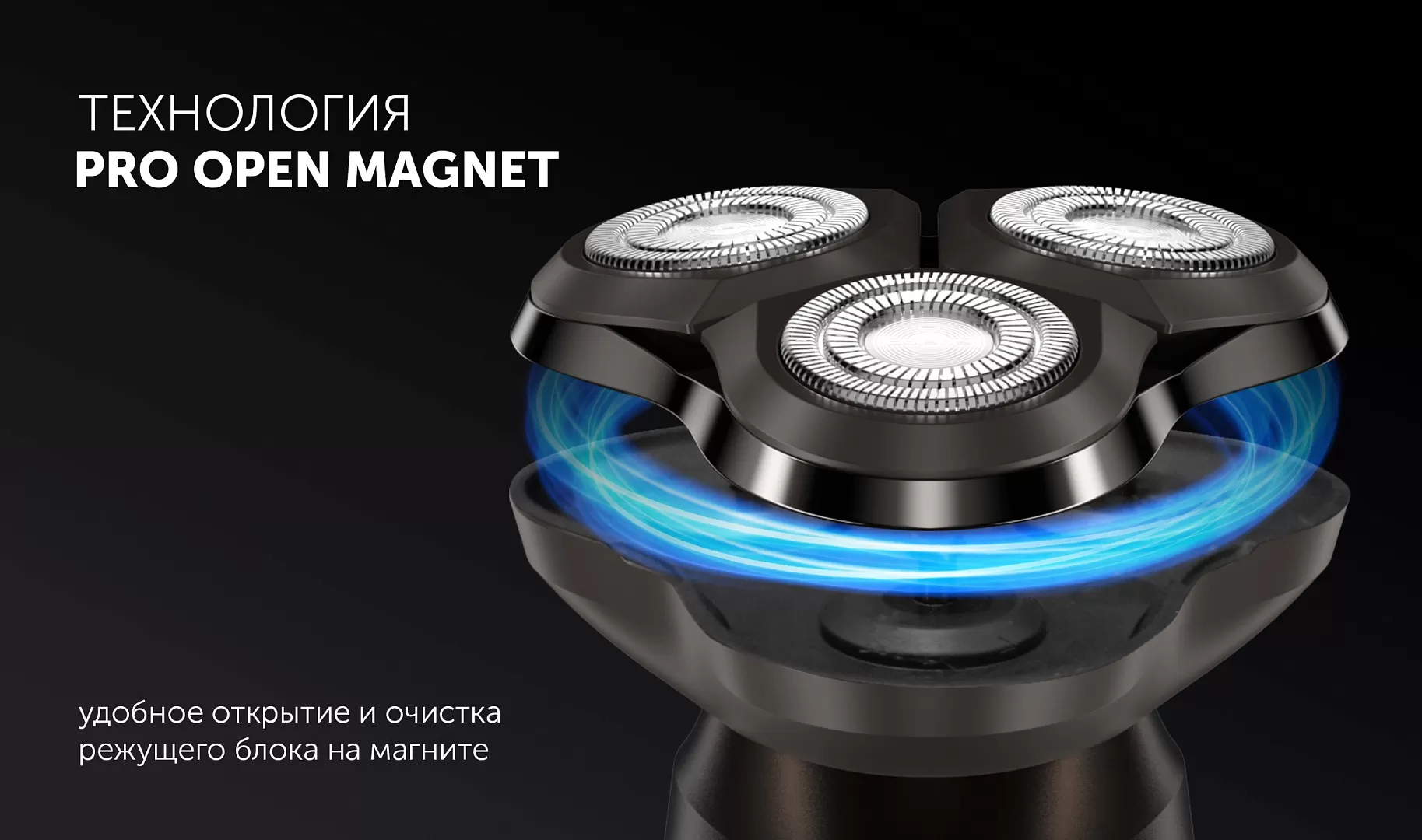 Технология PRO Open Magnet - удобное открытие и очистка режущего блока на магните.