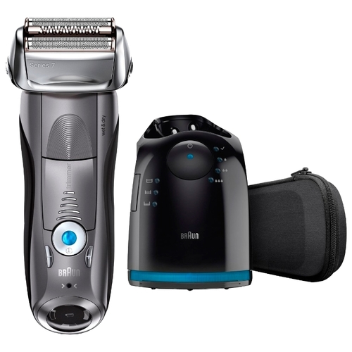 Электробритва Braun Series 7 — это электрическая бритва, которая благодаря встроенной системе Responsive Intelligence считывает особенности щетины и адаптируется к ним, что обеспечивает гладкое и мягкое бритьё. На 100% водонепроницаемая электробритва может работать до 7 лет, её можно использовать как для сухого бритья, так и для бритья с водой, пеной или гелем. В неё встроен выдвижной точный триммер, который помогает обрабатывать труднодоступные участки, такие как область над верхней губой и бакенбарды, не раздражая кожу. 5 персонализированных режимов бритья позволяют подстраивать мощность под тип вашей кожи и выбранный стиль бритья. Вы можете бриться до 50 минут без подключения бритвы к сети, потратив всего лишь час на зарядку аккумулятора. В комплект входит станция очистки и подзарядки Clean&Charge с 4 функциями, которая одним нажатием кнопки тщательно очищает, смазывает и заряжает бритву — и она каждый день кажется новой. К бритве прилагается дорожный чехол, чтобы её удобно было брать в поездки.