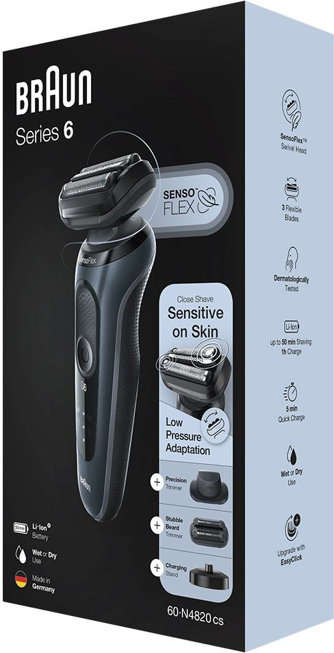 Описание: Электробритва с технологией SensoFlex: дерматологически проверенная плавающая головка адаптируется, снижая давление на чувствительную кожу. Лезвия SensoFoil специально разработаны для бритья даже самых маленьких волосков и комфорта кожи.