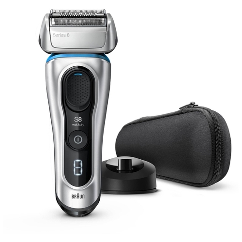 Электробритва подходит для влажного и сухого бритья. Бритва Series 8 имеет на 20% более мощный аккумулятор, чем бритвы линии Series 7. Оснащена усовершенствованным дисплеем Pro. Бритва разработана, спроектирована и изготовлена в Германии, рассчитана на 7 лет службы. Рекомендована Ассоциацией здоровья кожи. В комплекте: зарядная станция, тканевый дорожный футляр, зарядный кабель SmartPlug, щёточка для чистки.