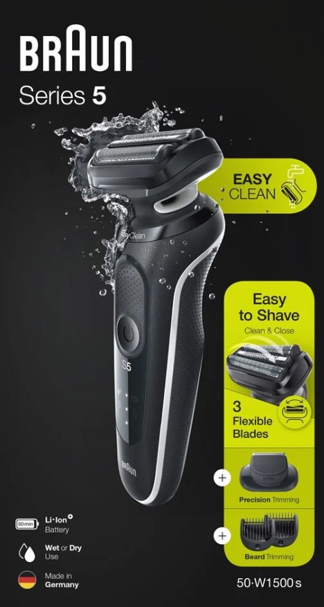 Электробритва представлена в черном корпусе с эргономичной ручкой, что обеспечивает комфорт в процессе бритья. Модель с сеточной системой бритья подходит для влажного и сухого бритья. Прибор в водостойком корпусе поддерживает чистку под струей воды, что позволяет легко ухаживать за ним: для очистки не нужно снимать бритвенную головку. Три плавающие головки позволяют электробритве подстраиваться к контурам лица, обеспечивая легкое бритье.