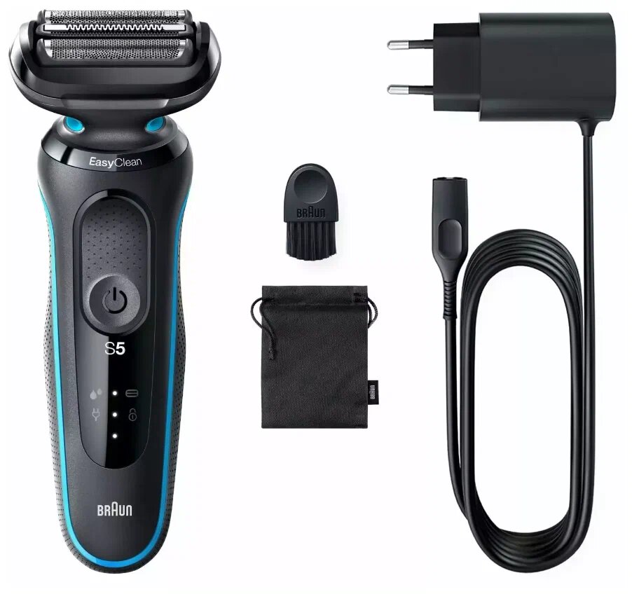 Подробная комплектация: бритва, адаптер питания с автоматической регулировкой от 100 до 240 В, щетка для чистки