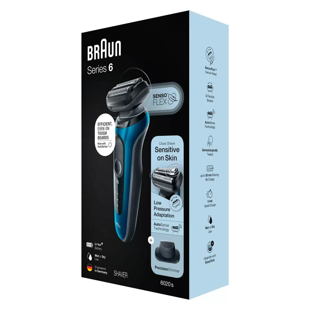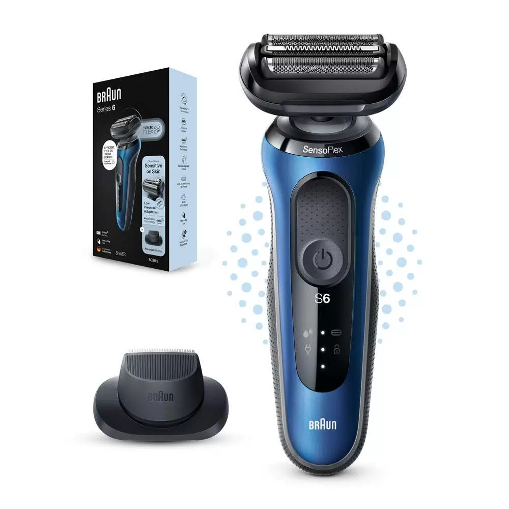 Электробритва Braun Series 6 61-B1200s Blue, Насадка триммер, Дорожный футляр, Зарядное устройство SmartPlug, Щеточка для чистки