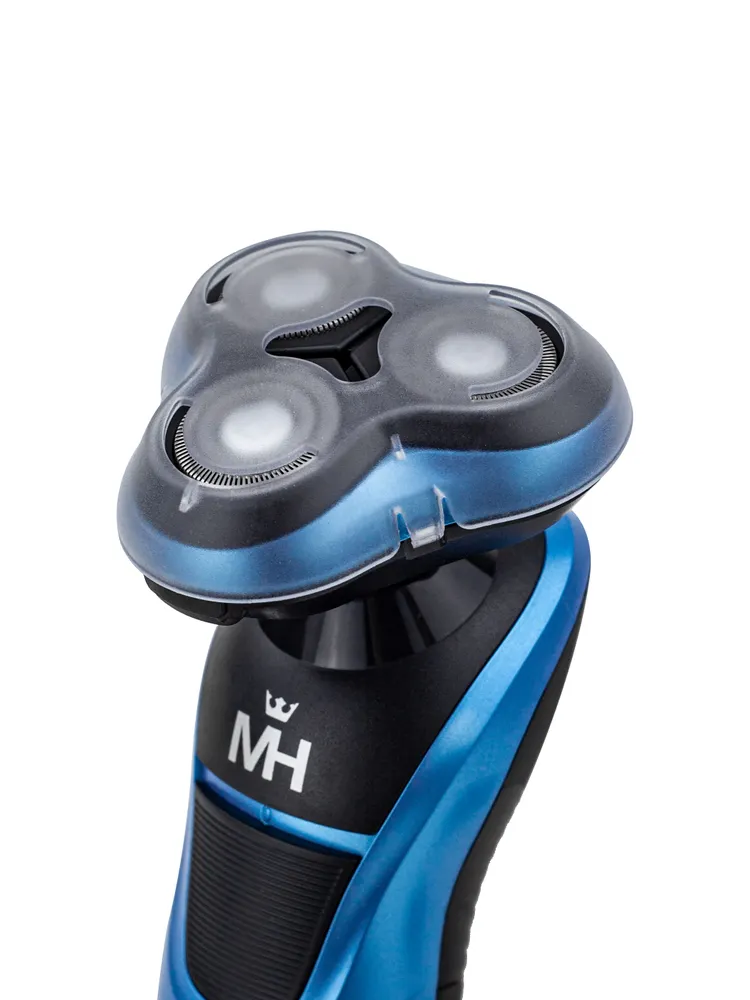 Электробритва роторная с тремя головками и питанием от аккумулятора. Допускается только сухое бритье и аккуратная чистка лезвий с помощью идущей в комплекте щеточки. Благодаря широкой ручке бритва удобно лежит в руке в любом положении и не выскальзывает из ладони.