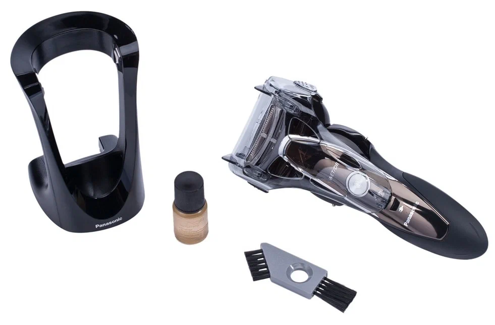 сенсорная технология бритья - изменение скорости двигателя в зависимости от плотности щетины; насадка для горизонтального или вертикального хранения бритвы; подвижные заслонки на корпусе для очистки бритвы под струей воды