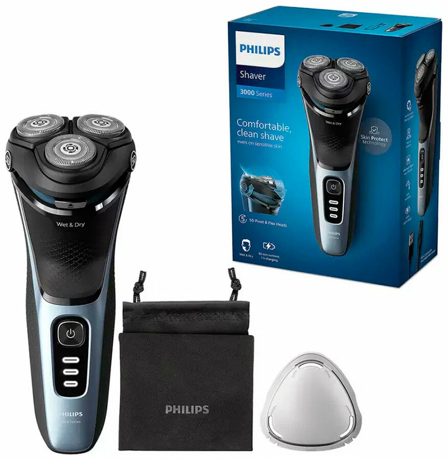 Электробритва Philips S3243/12 подходит для сухого и влажного бритья.