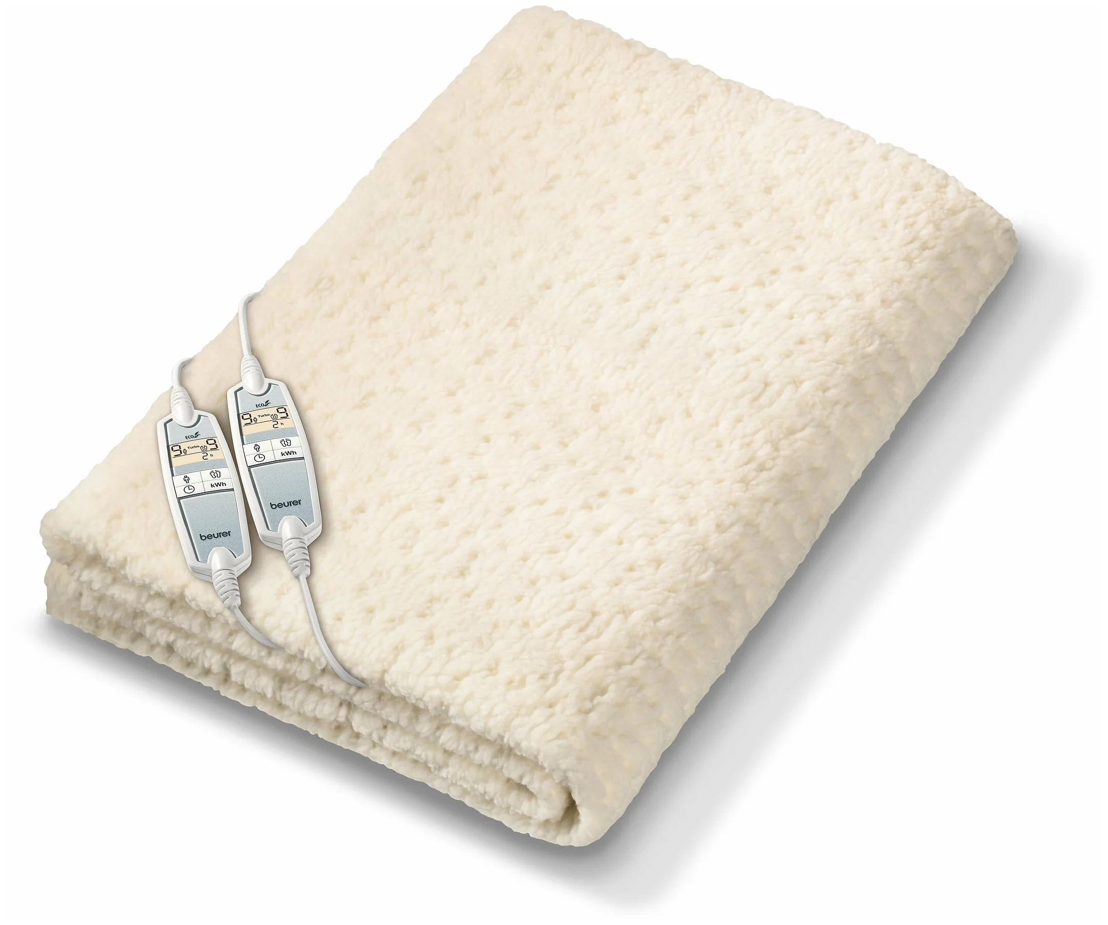 Роскошная двуспальная электрическая простыня Beurer UB86 с раздельной настройкой тепловых зон для тела и ног. Верхняя сторона - высококачественный мягкий микрофлис, снизу - нетканый материал. Особенности: Возможность отдельной настройки температурных зон для тела и ног.9 температурных режимов для каждой зоны. Инновационный выключатель с подсвечиваемым ЖК-дисплеем. Индивидуальная настройка таймера отключения (почасовая). Функция EcoControl: индикация расхода электроэнергии в кВт/ч. Время предварительного нагрева ок. 15 мин. Система защиты от перегрева BSS . Автоматическое переключение с температурных режимов 7, 8 и 9 на температурный режим 6 через 3 ч. Пригоден для машинной стирки при температуре 30 °C. Съемный подводящий провод. Потребляемая мощность: 60 Вт.